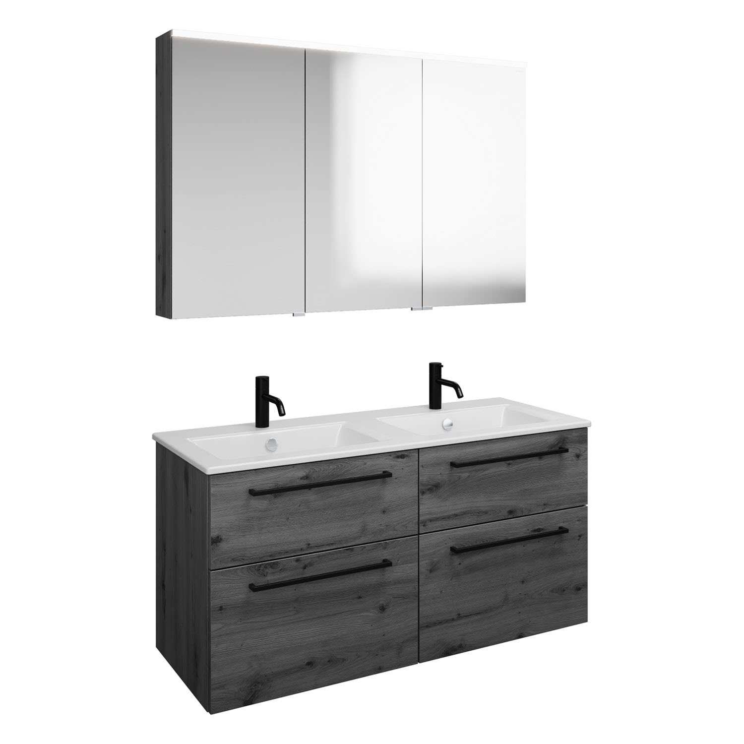 burgbad Eqio Badmöbel-Set 122 cm mit Keramik-Doppelwaschtisch Slim und Unterschrank mit Stangengriff G0234, mit Spiegelschrank