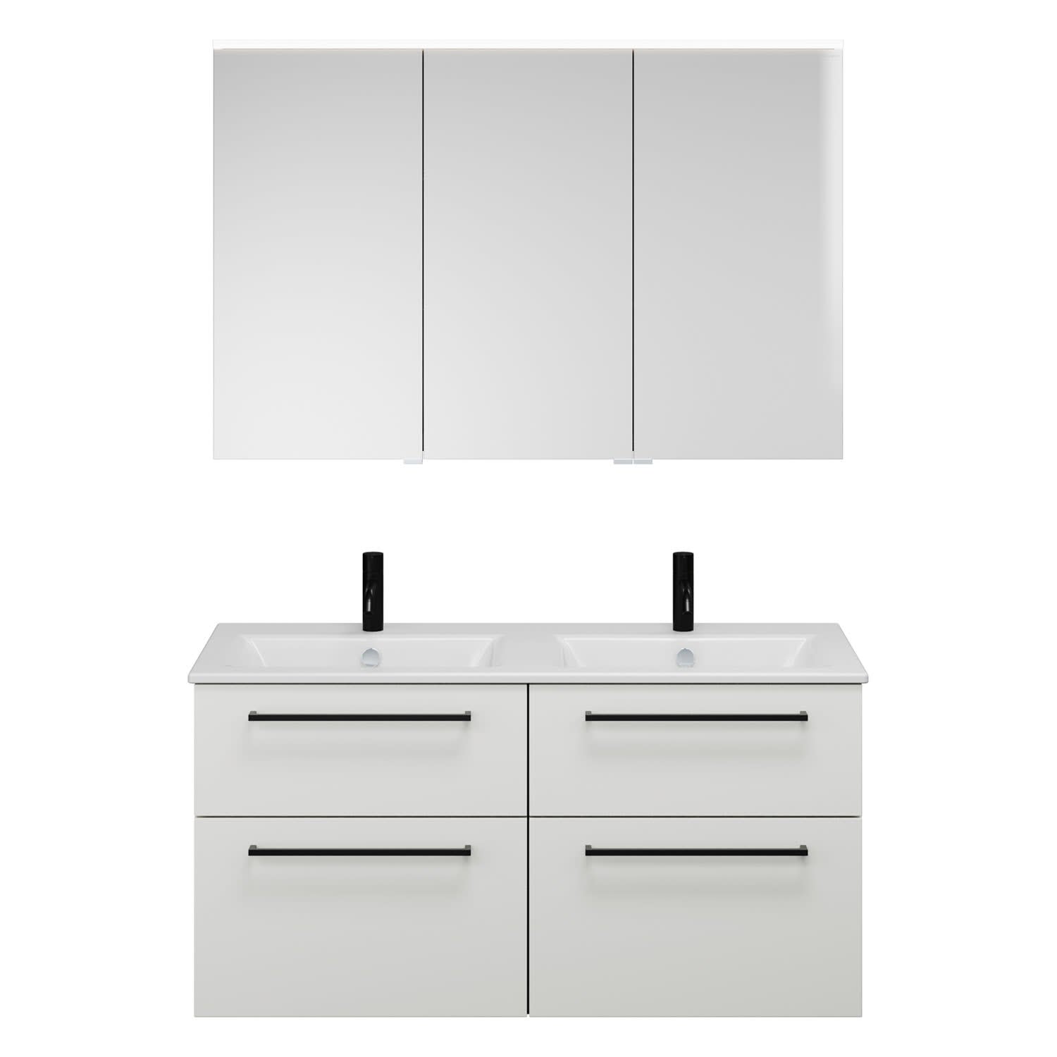 burgbad Eqio Badmöbel-Set 122 cm mit Keramik-Doppelwaschtisch Slim und Unterschrank mit Stangengriff G0234, mit Spiegelschrank