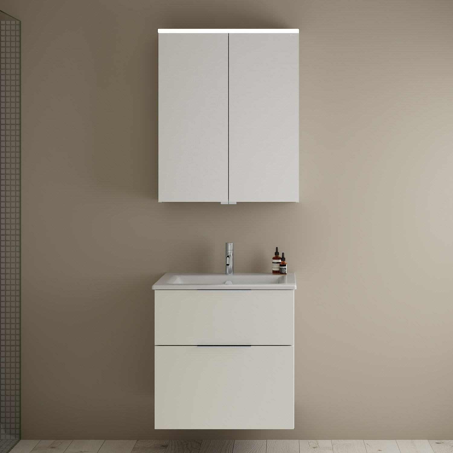 burgbad Eqio Badmöbel-Set 65 cm mit Keramik-Waschtisch Slim und Unterschrank mit Griff G0146, mit Spiegelschrank