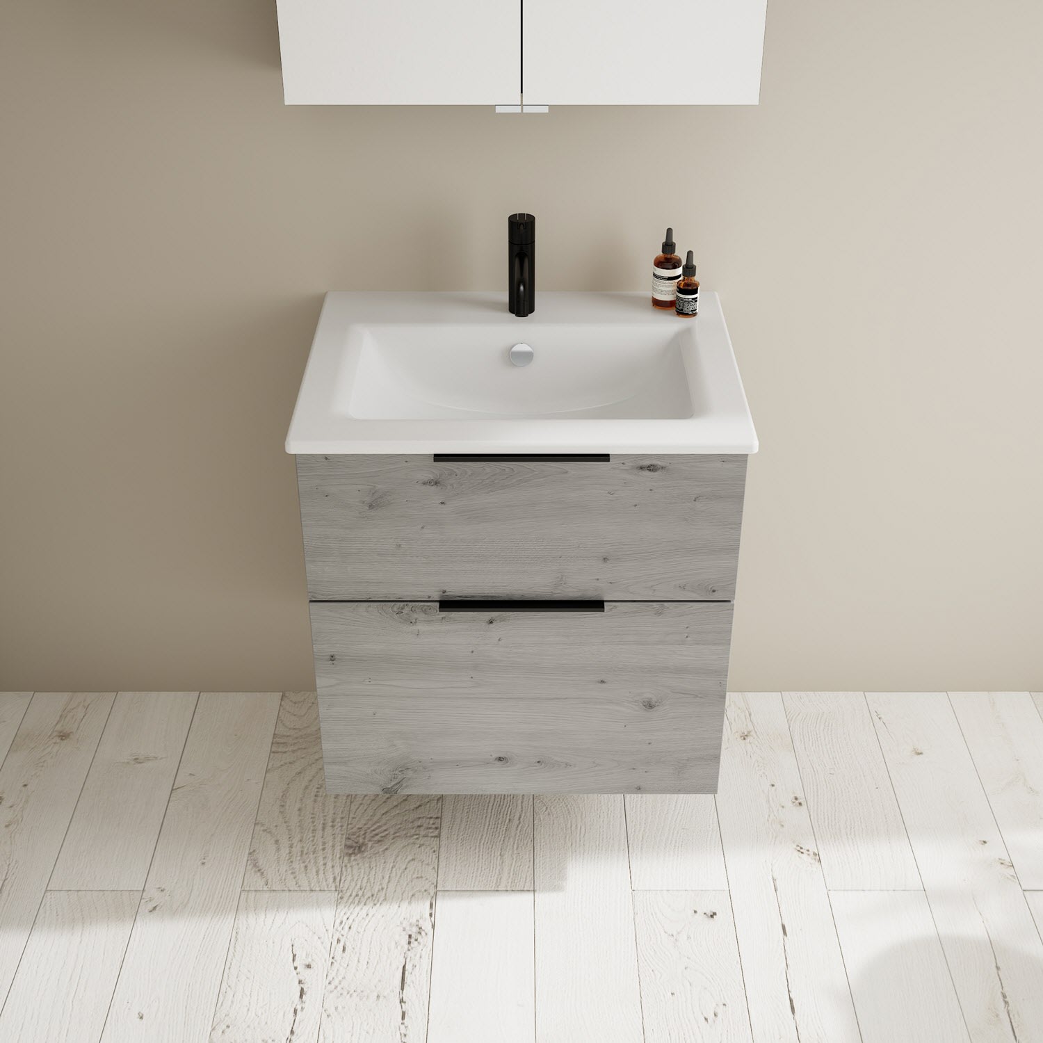 burgbad Eqio Badmöbel-Set 65 cm mit Keramik-Waschtisch Slim und Unterschrank mit Griff G0200, mit Spiegelschrank