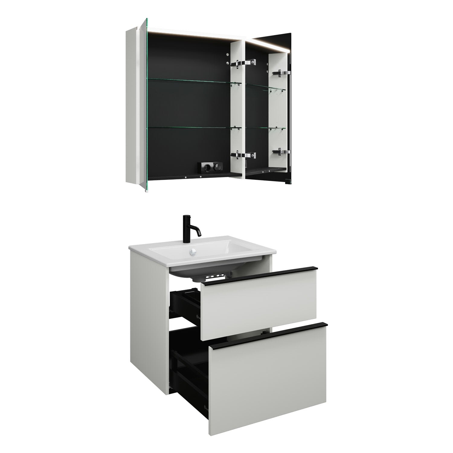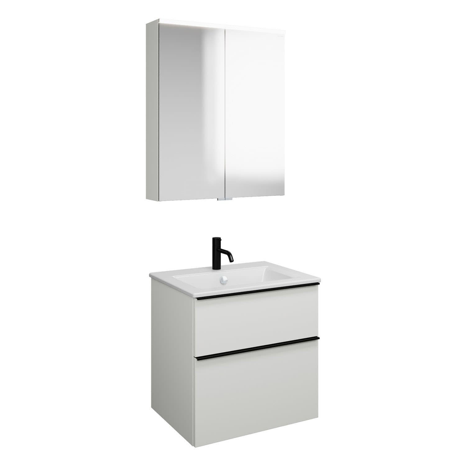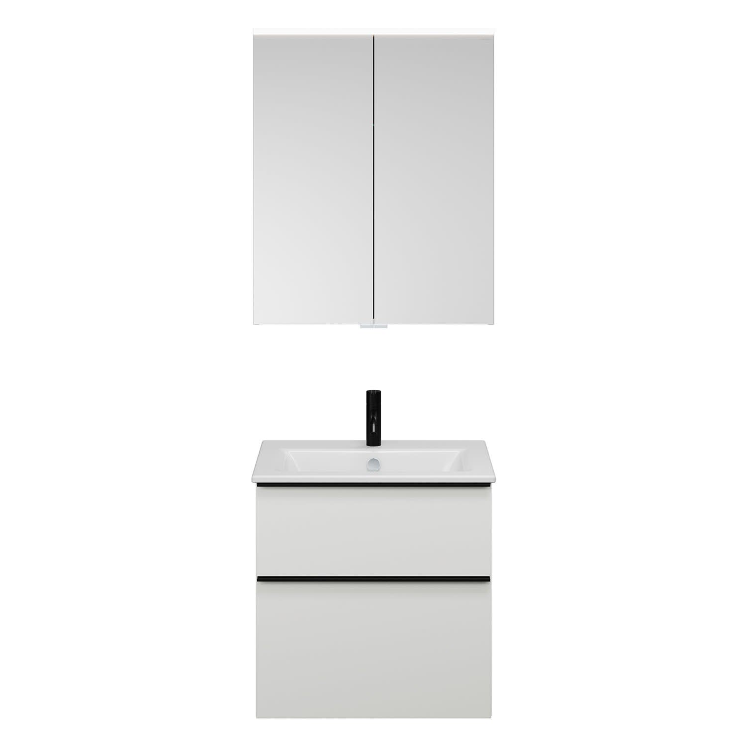 burgbad Eqio Badmöbel-Set 65 cm mit Keramik-Waschtisch Slim und Unterschrank mit Griffleiste G0252, mit Spiegelschrank
