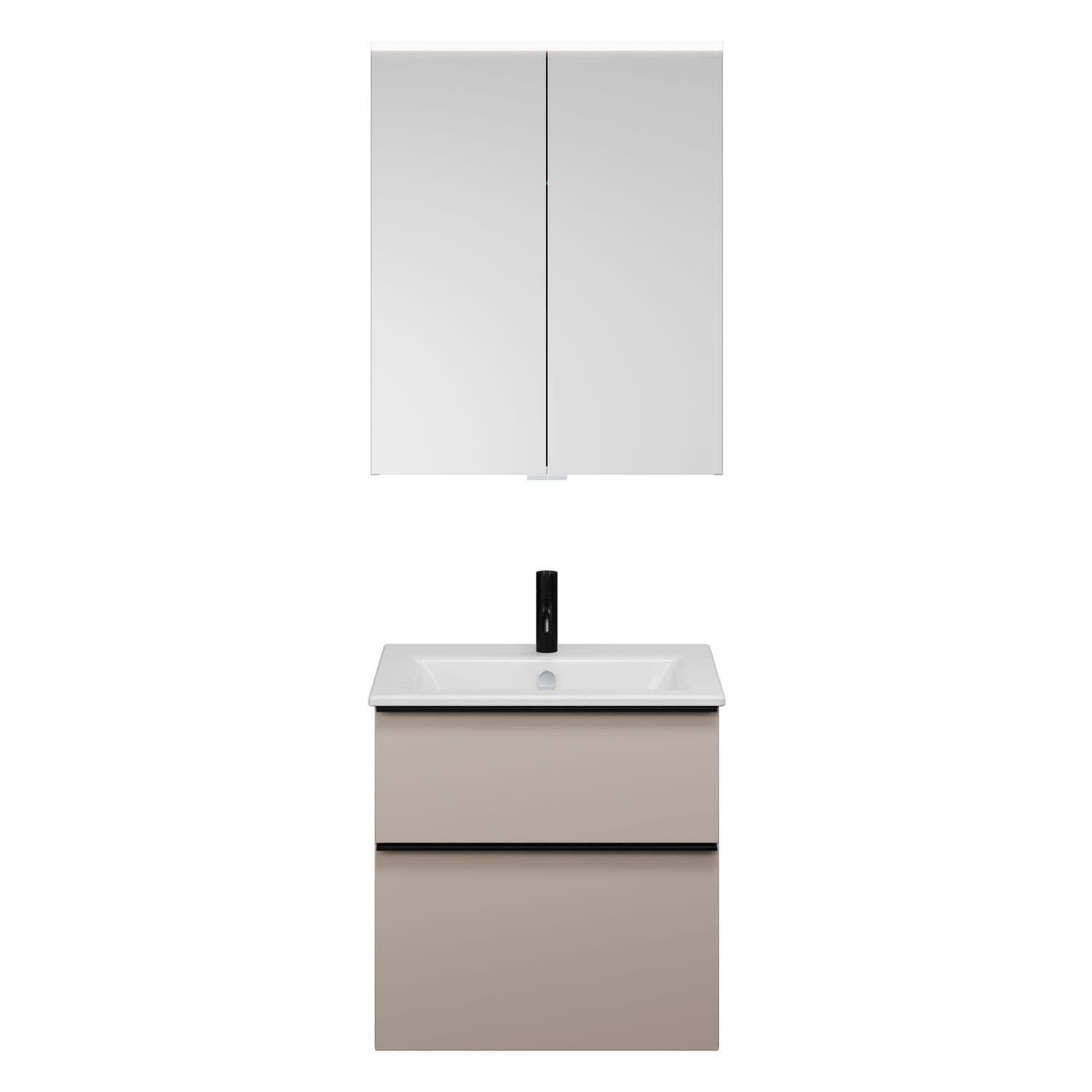 burgbad Eqio Badmöbel-Set 65 cm mit Keramik-Waschtisch Slim und Unterschrank mit Griffleiste G0252, mit Spiegelschrank