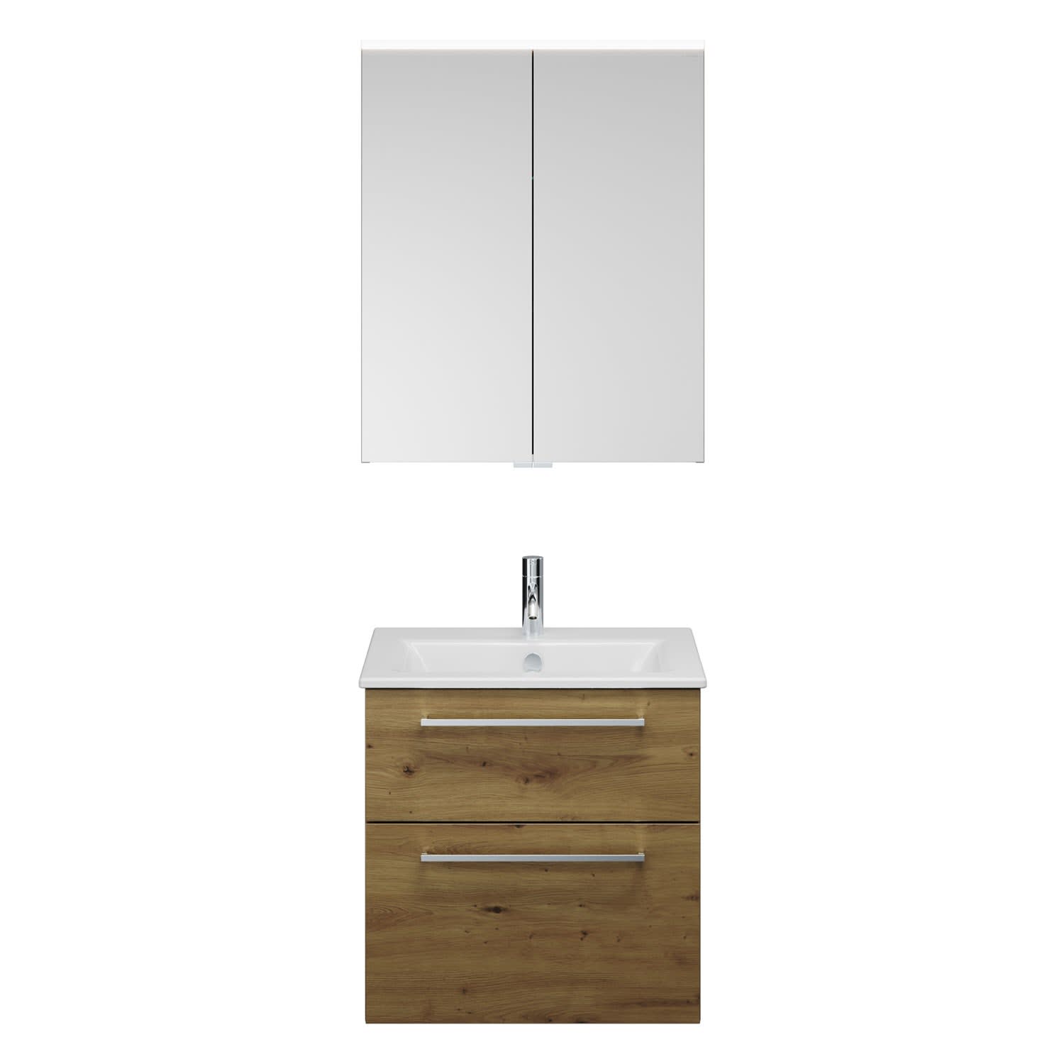 burgbad Eqio Badmöbel-Set 65 cm mit Keramik-Waschtisch Slim und Unterschrank mit Stangengriff P95, mit Spiegelschrank