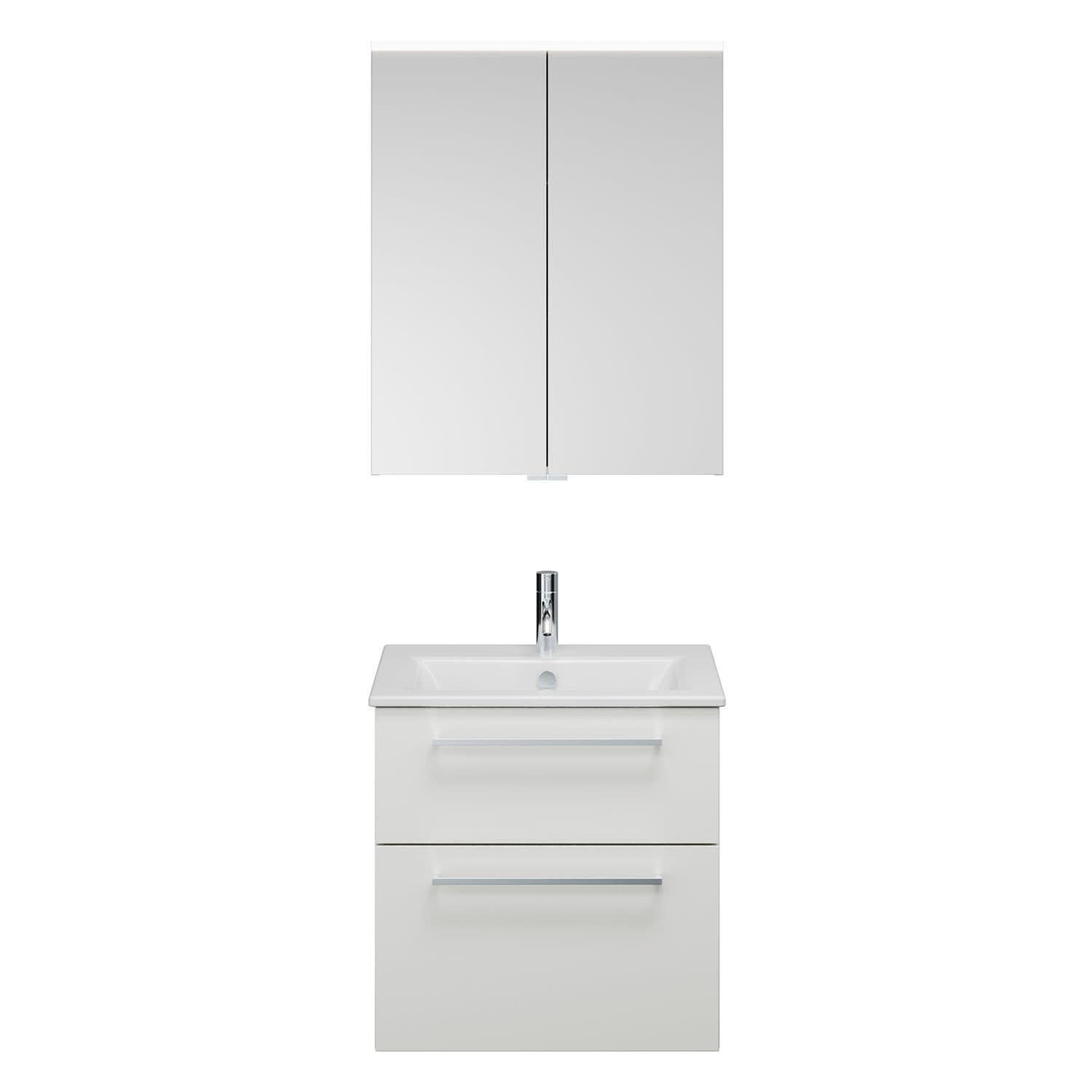 burgbad Eqio Badmöbel-Set 65 cm mit Keramik-Waschtisch Slim und Unterschrank mit Stangengriff P95, mit Spiegelschrank