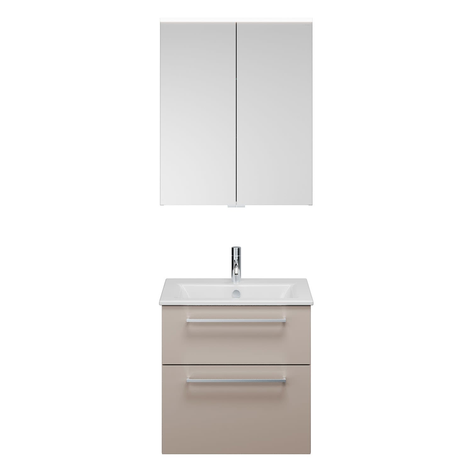 burgbad Eqio Badmöbel-Set 65 cm mit Keramik-Waschtisch Slim und Unterschrank mit Stangengriff P95, mit Spiegelschrank