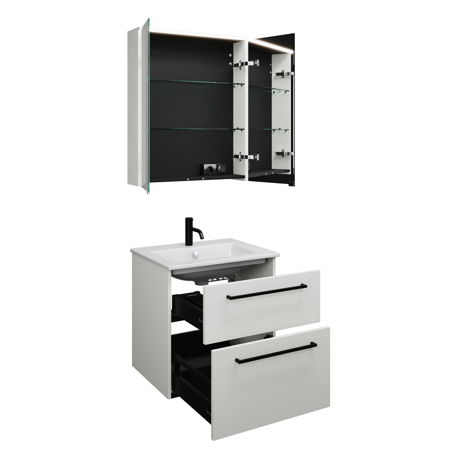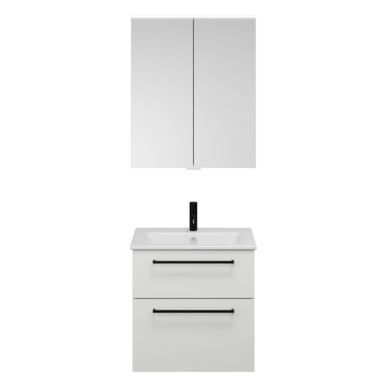 burgbad Eqio Badmöbel-Set 65 cm mit Keramik-Waschtisch Slim und Unterschrank mit Stangengriff G0234, mit Spiegelschrank