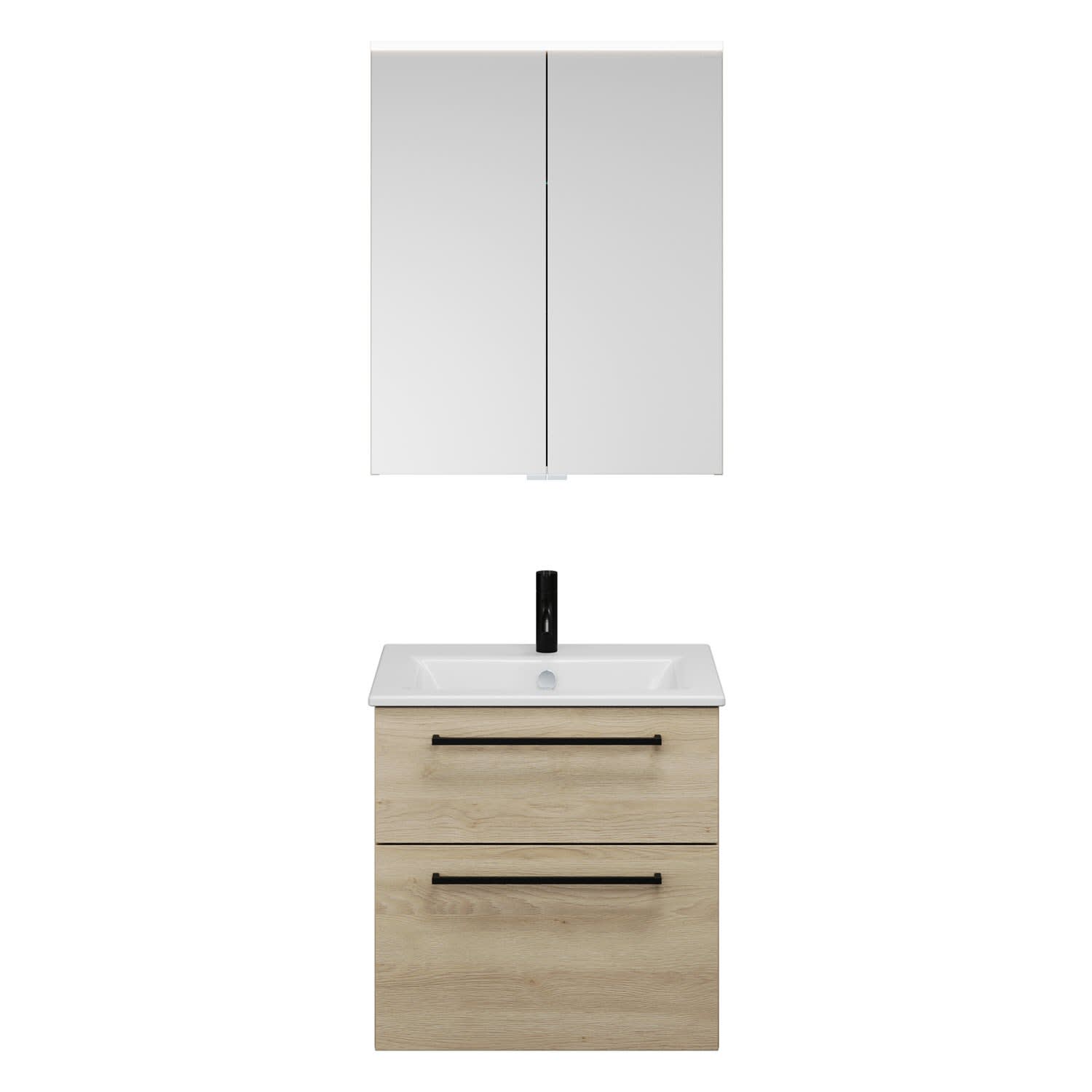 burgbad Eqio Badmöbel-Set 65 cm mit Keramik-Waschtisch Slim und Unterschrank mit Stangengriff G0234, mit Spiegelschrank