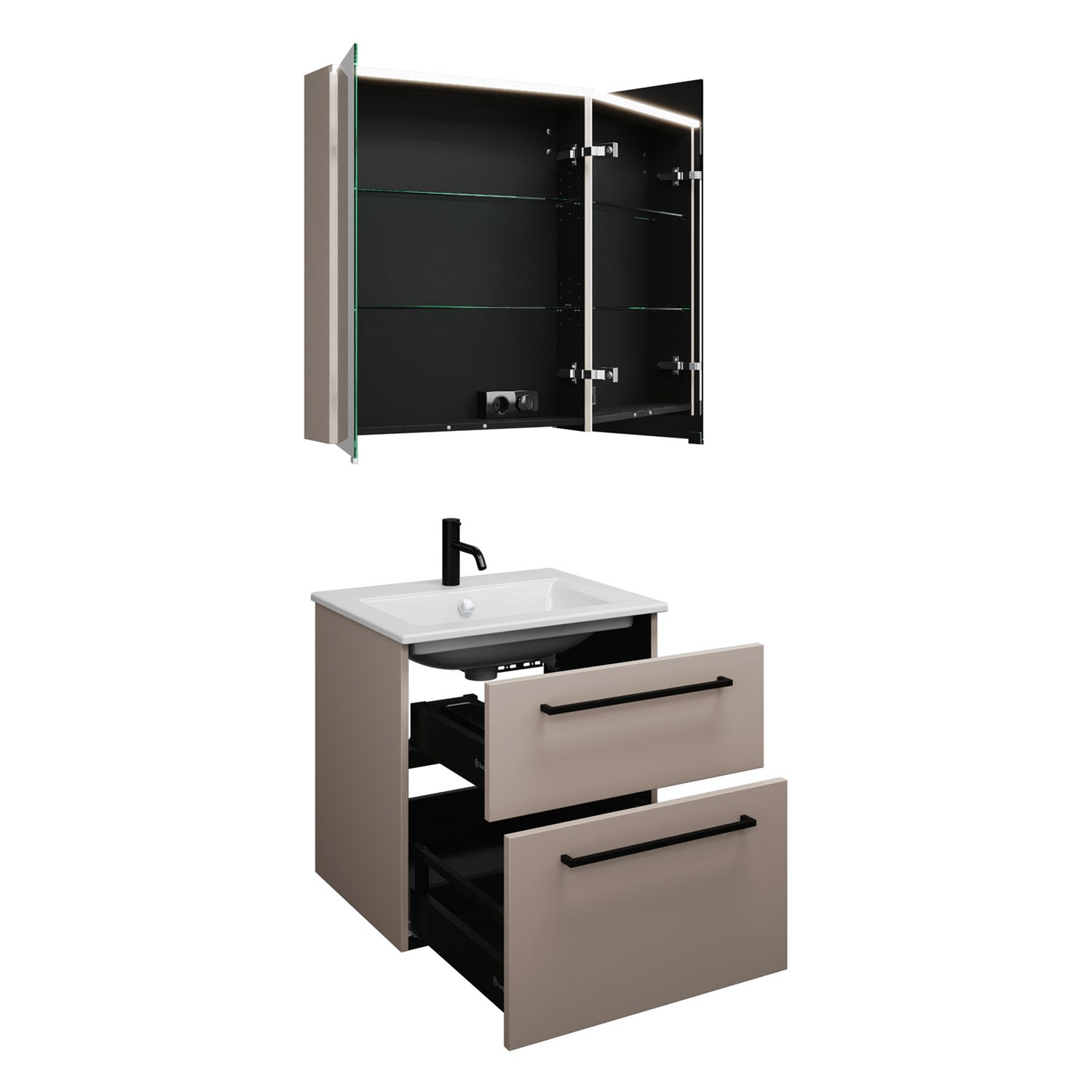 burgbad Eqio Badmöbel-Set 65 cm mit Keramik-Waschtisch Slim und Unterschrank mit Stangengriff G0234, mit Spiegelschrank