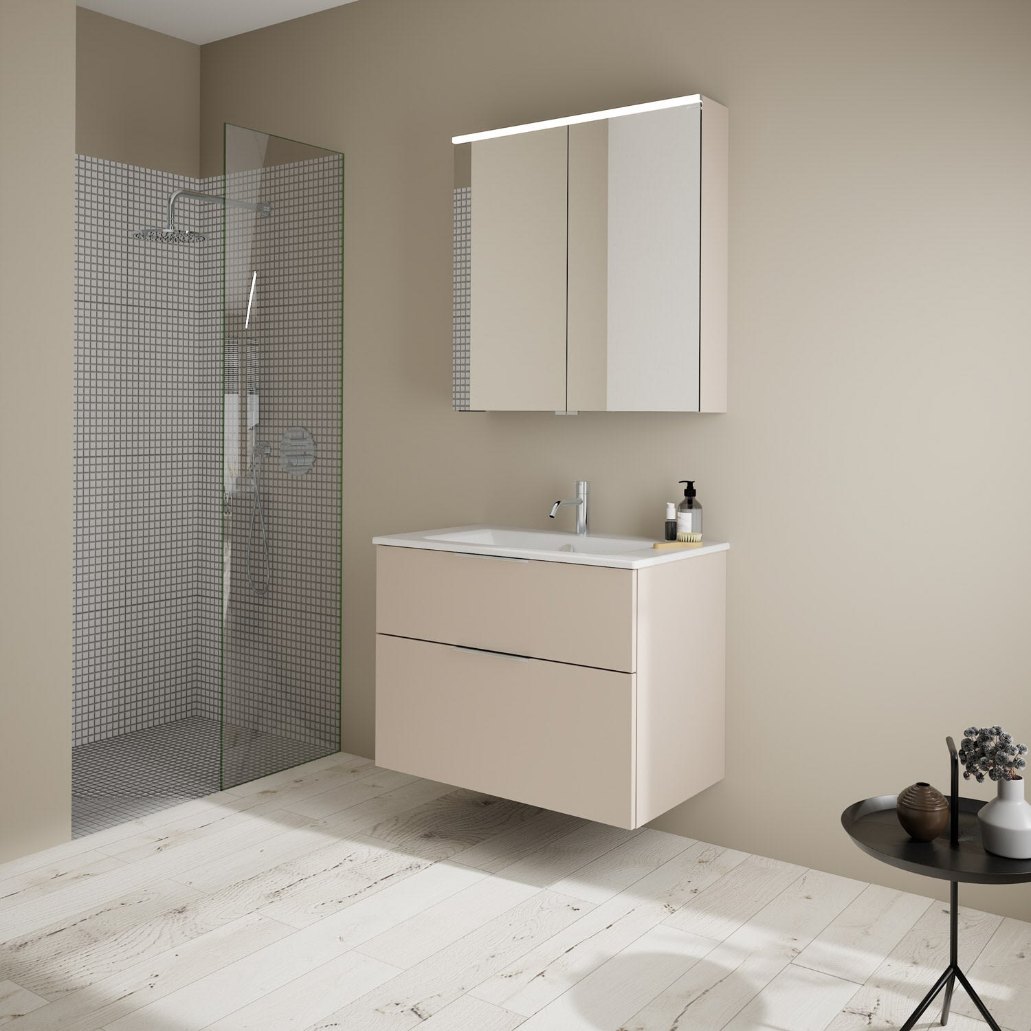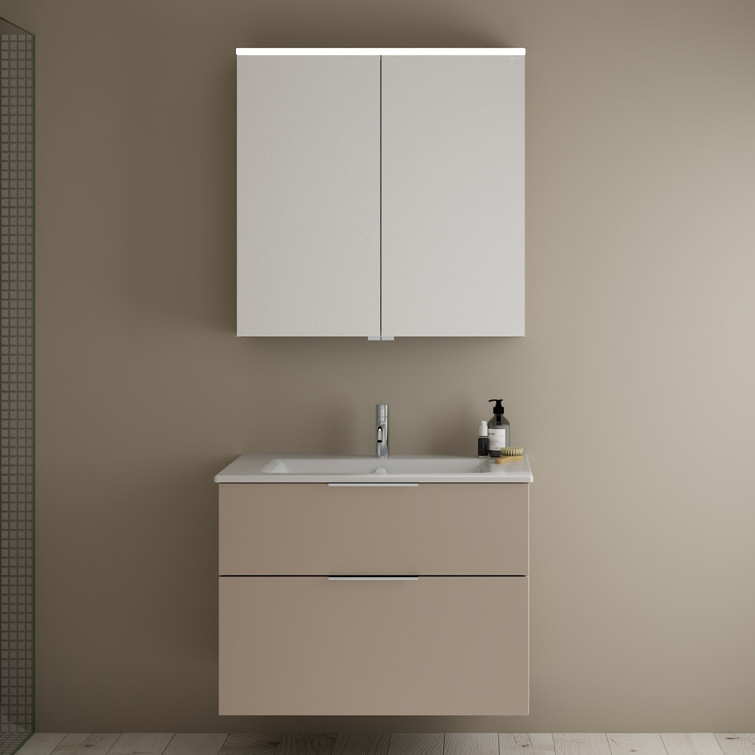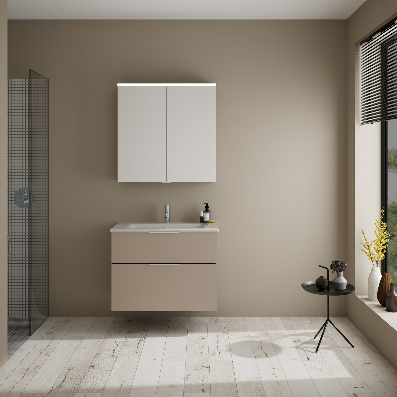 burgbad Eqio Badmöbel-Set 82 cm mit Keramik-Waschtisch Slim und Unterschrank mit Griff G0146, mit Spiegelschrank