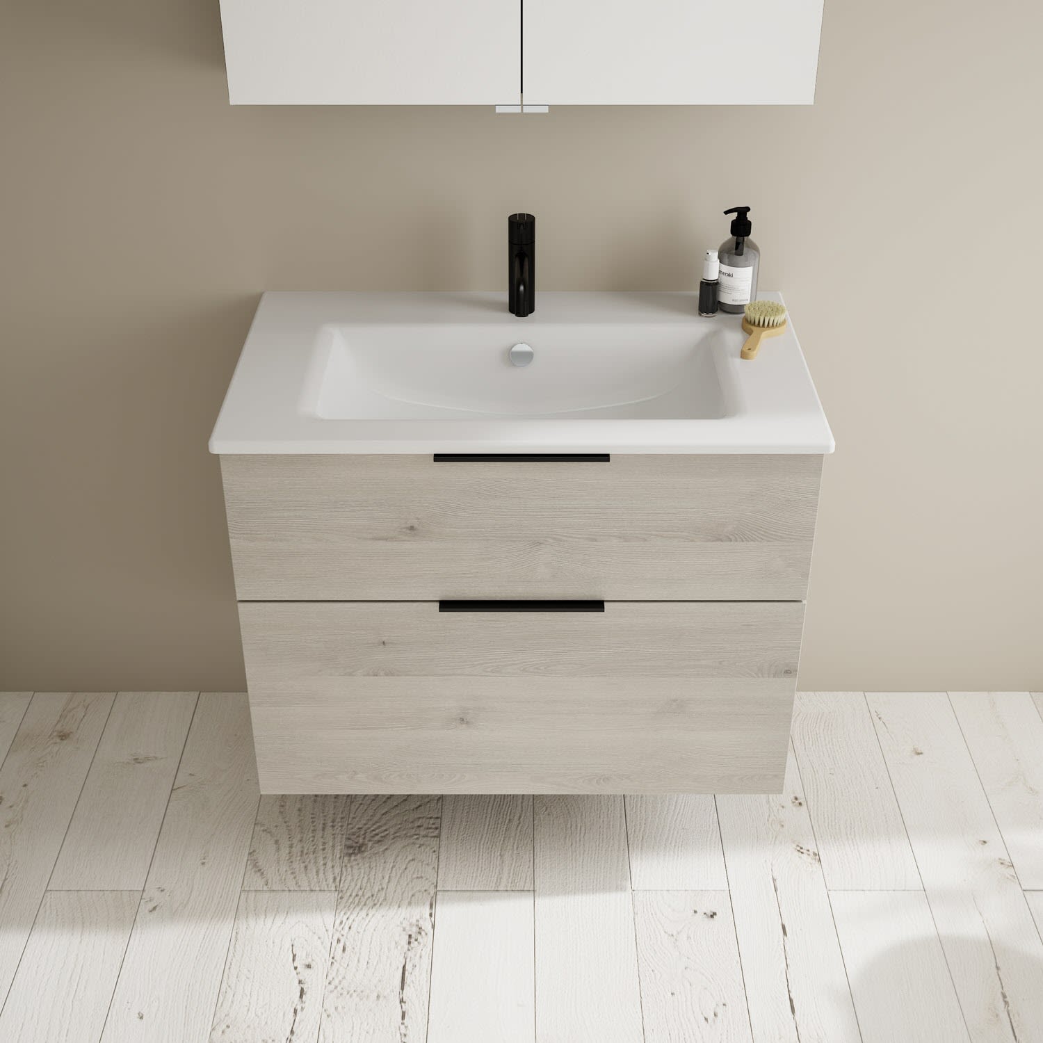 - Spiegelschrank, Waschtischunterschrank, Waschtisch, Befestigung außer Stockschrauben