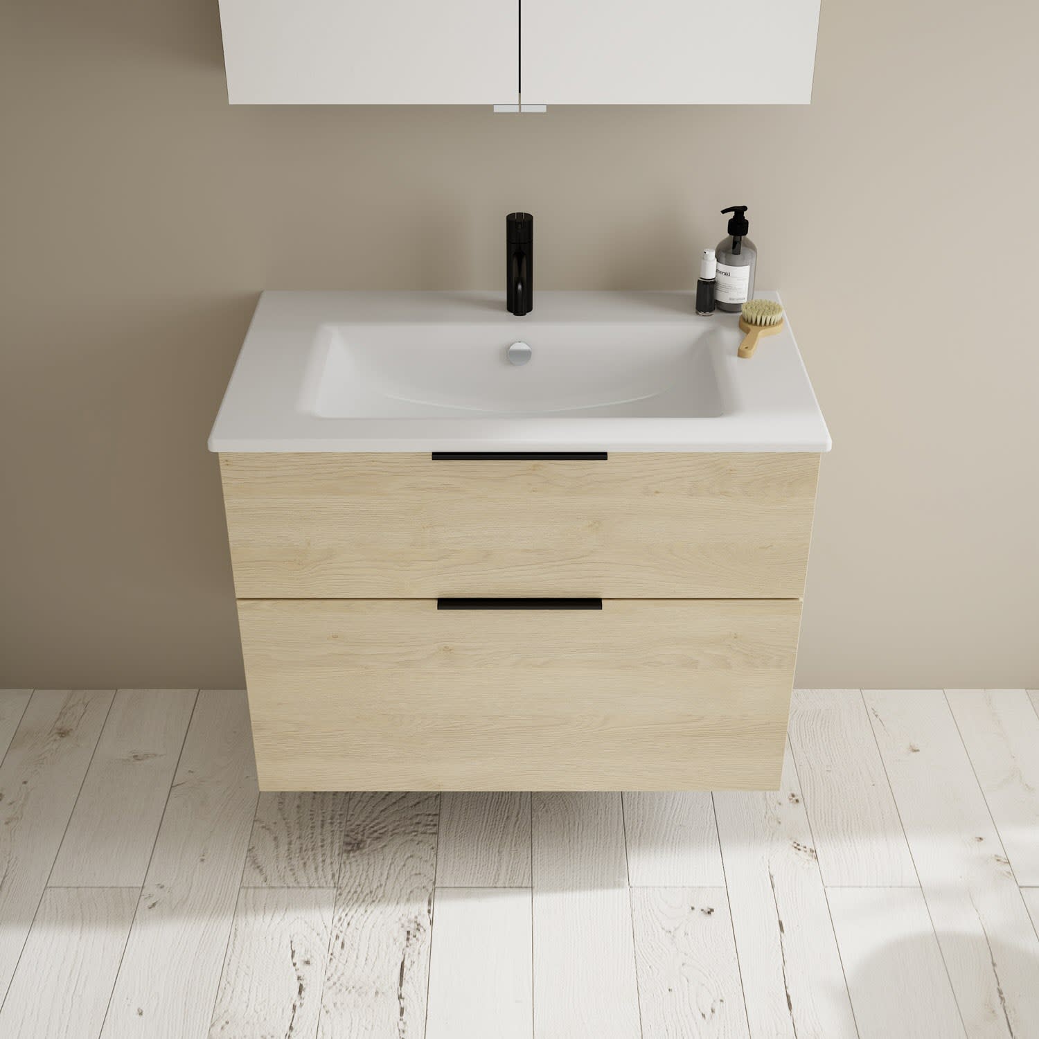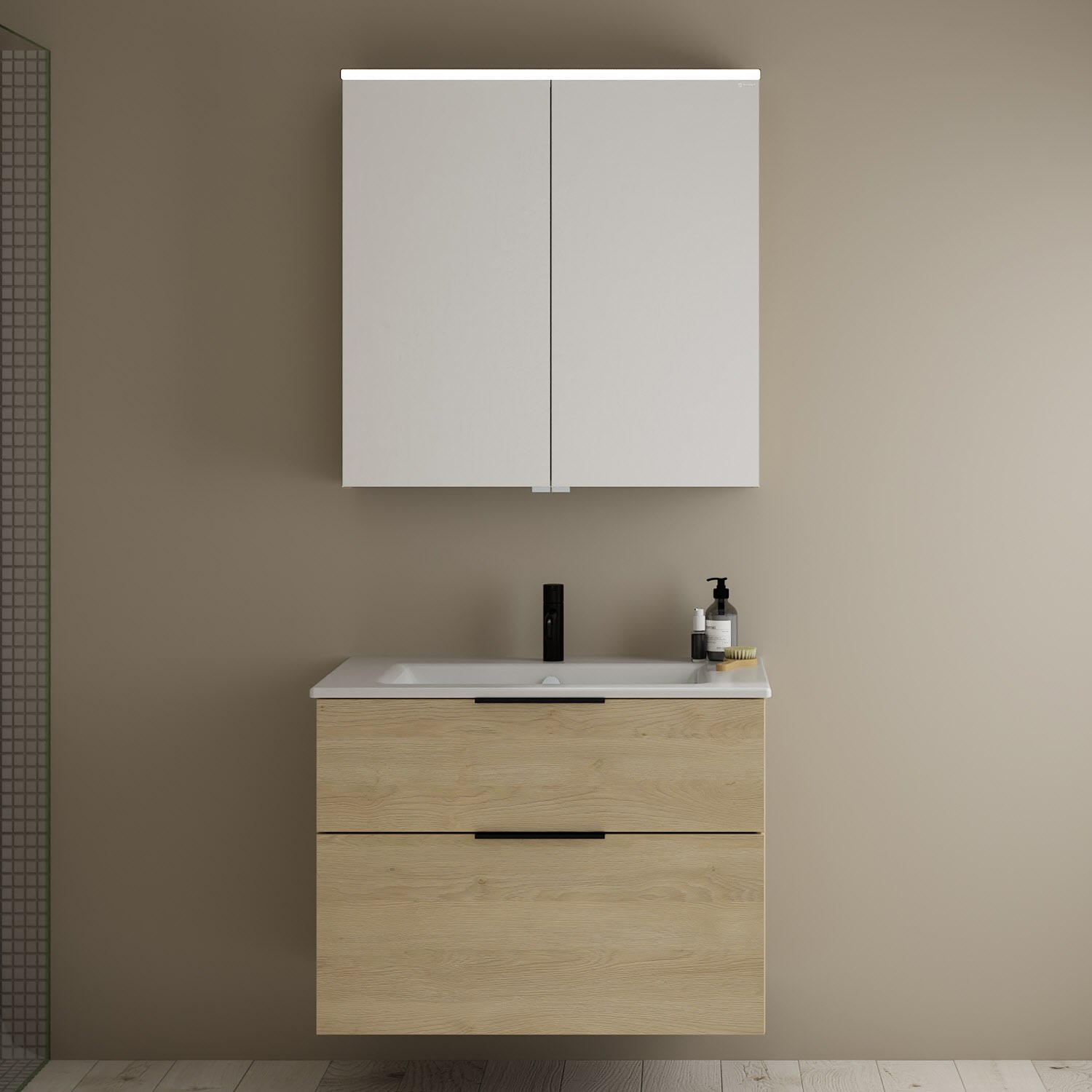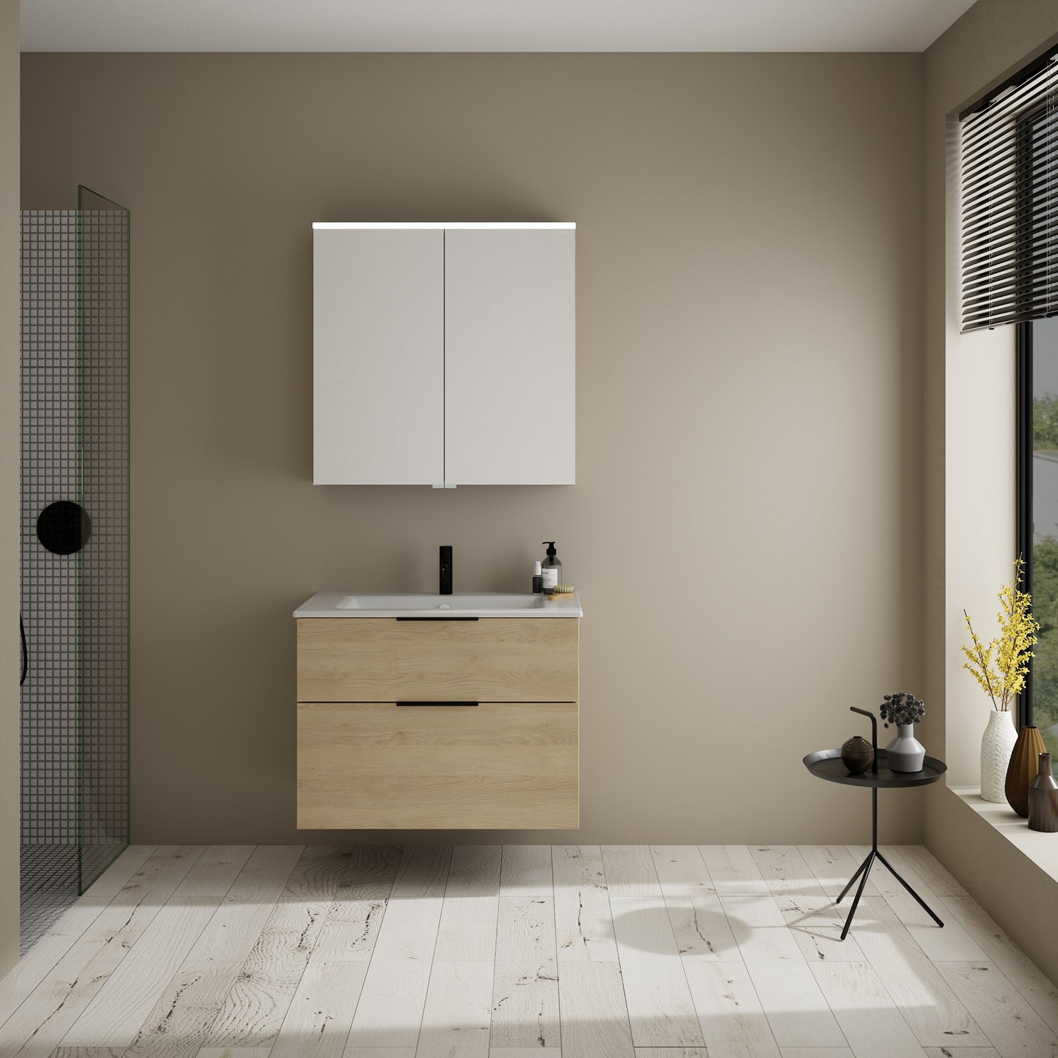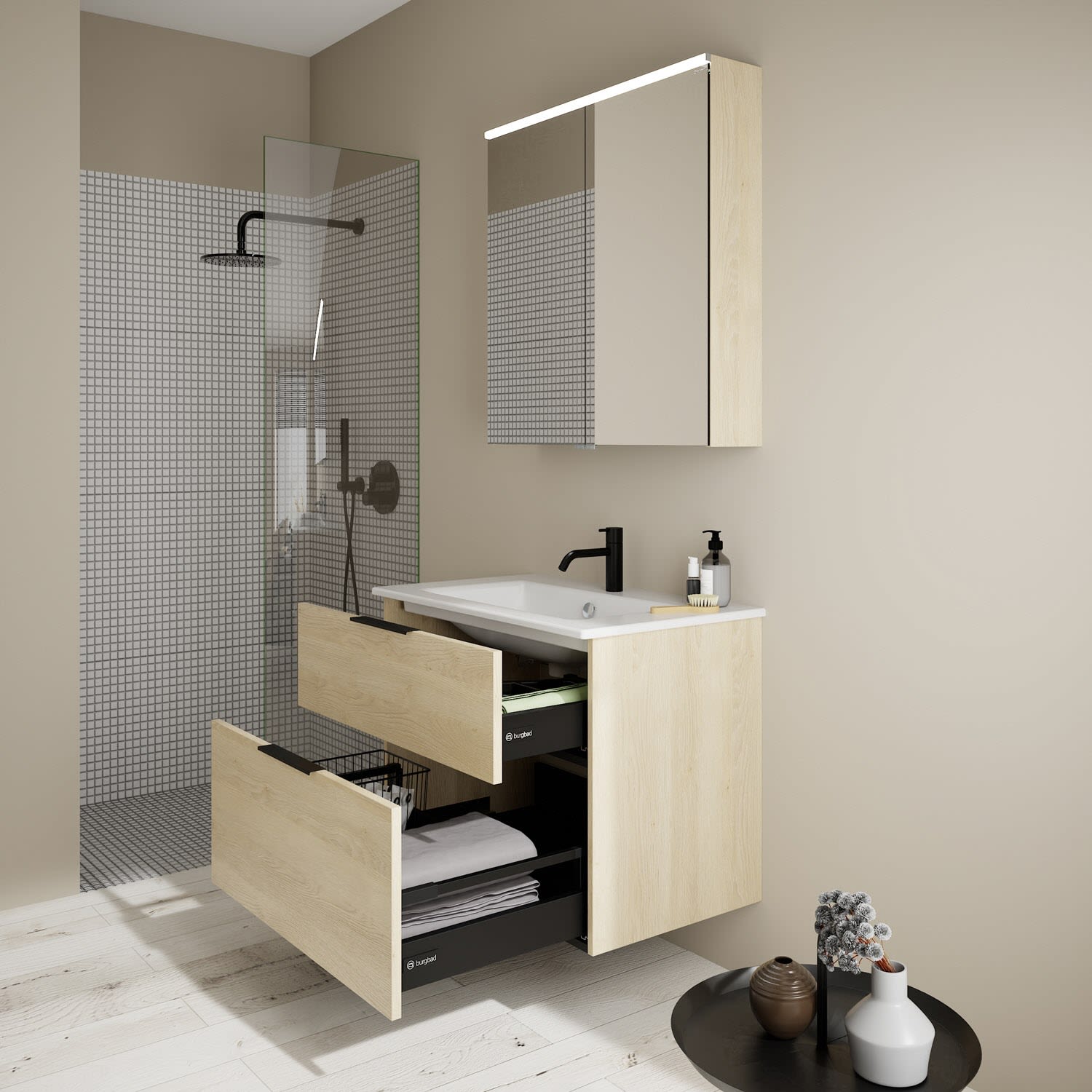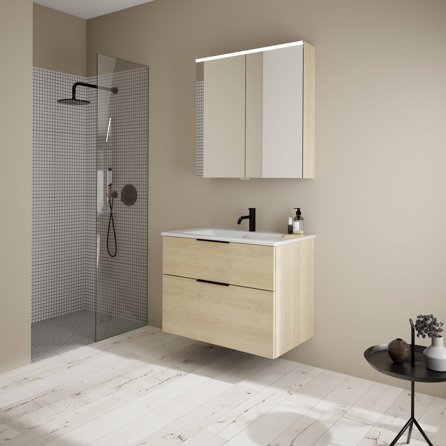 burgbad Eqio Badmöbel-Set 82 cm mit Keramik-Waschtisch Slim und Unterschrank mit Griff G0200, mit Spiegelschrank