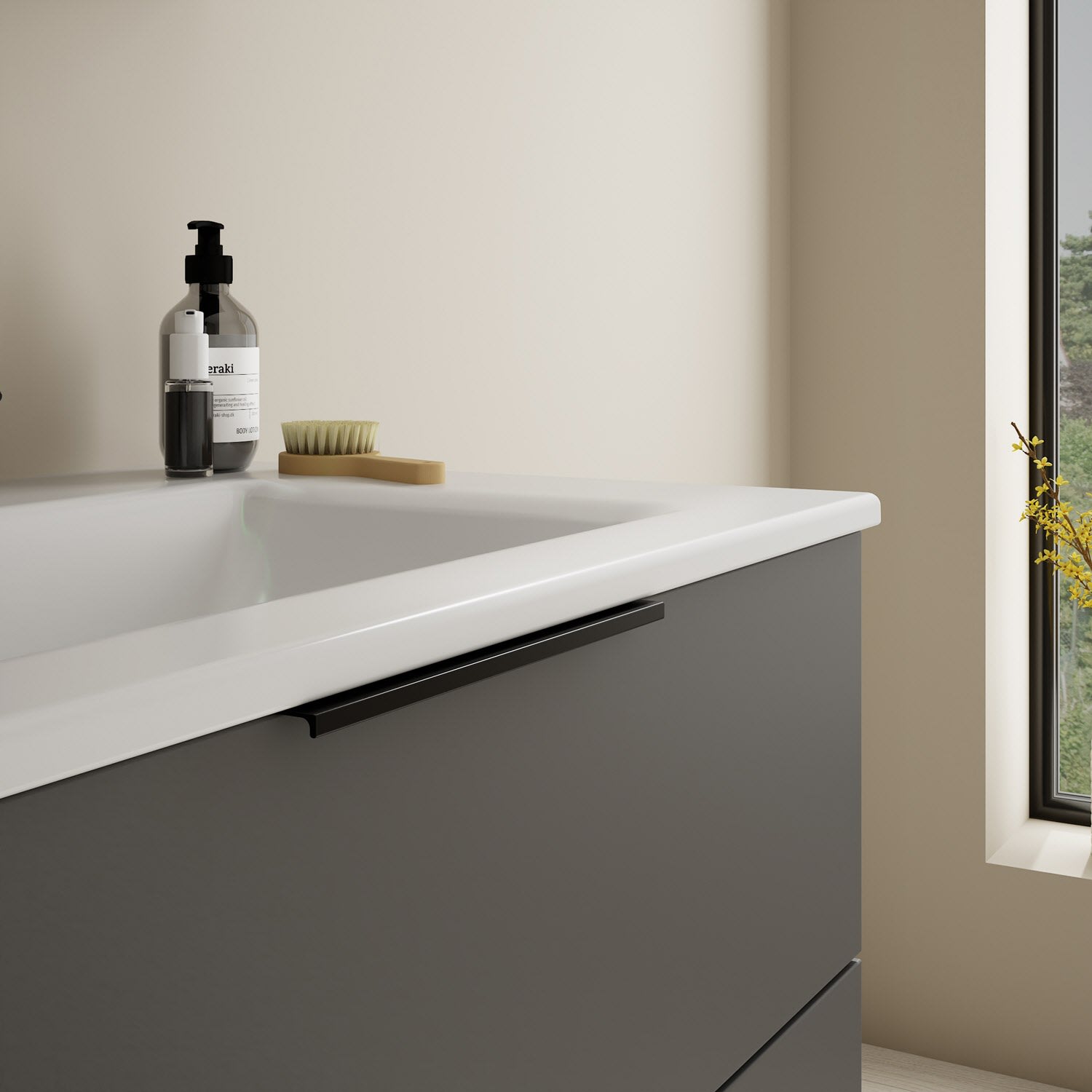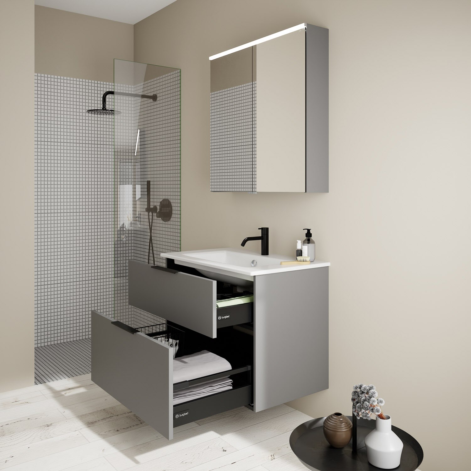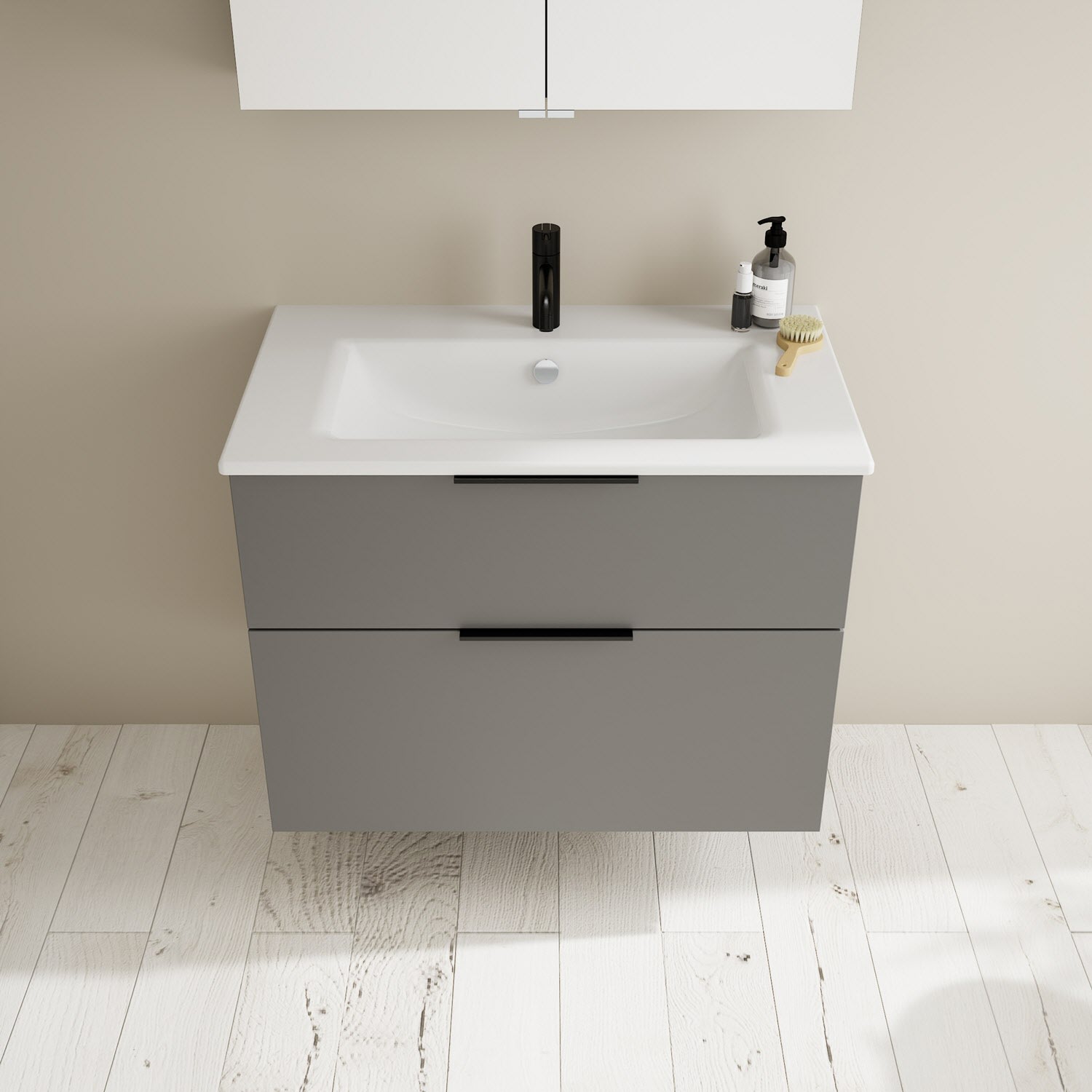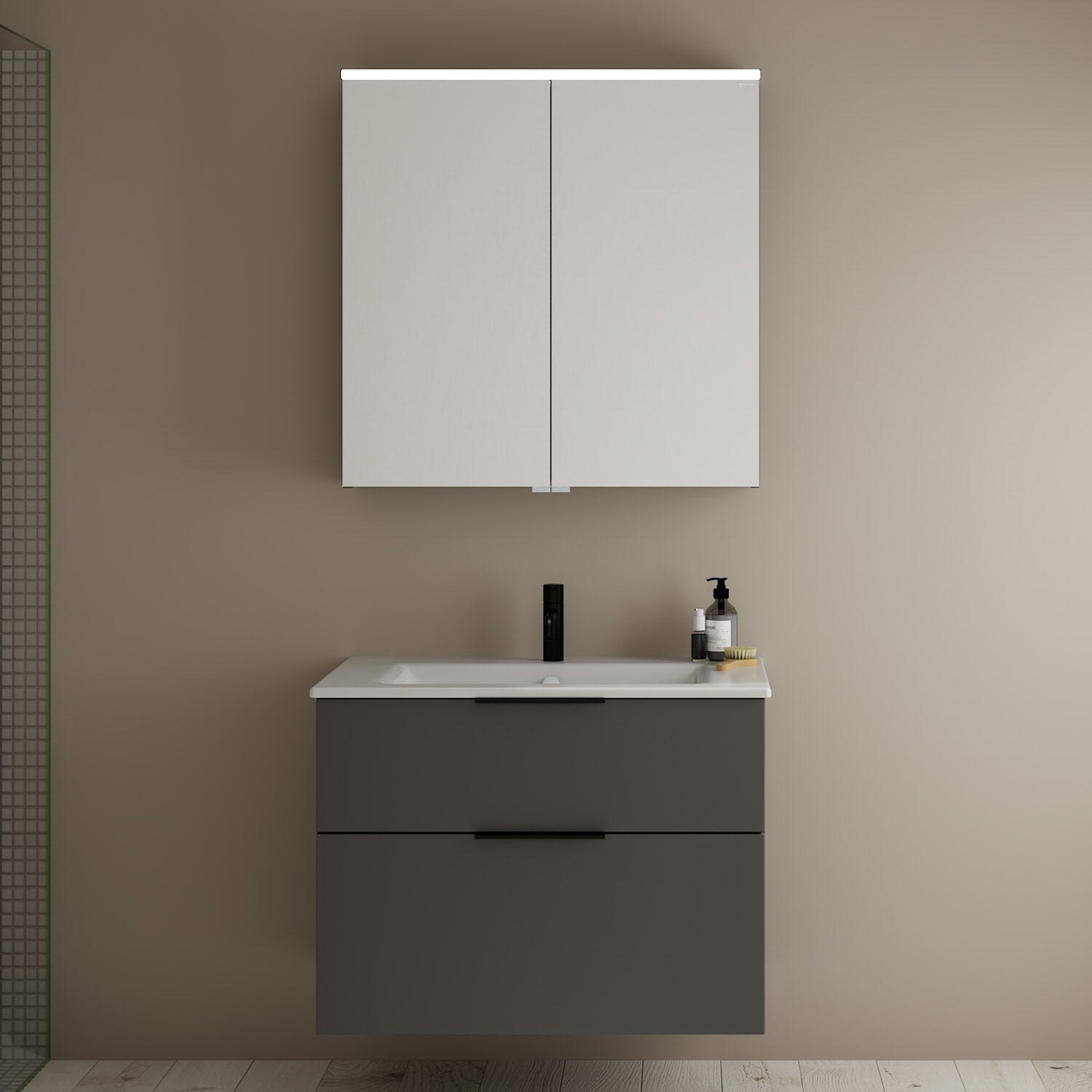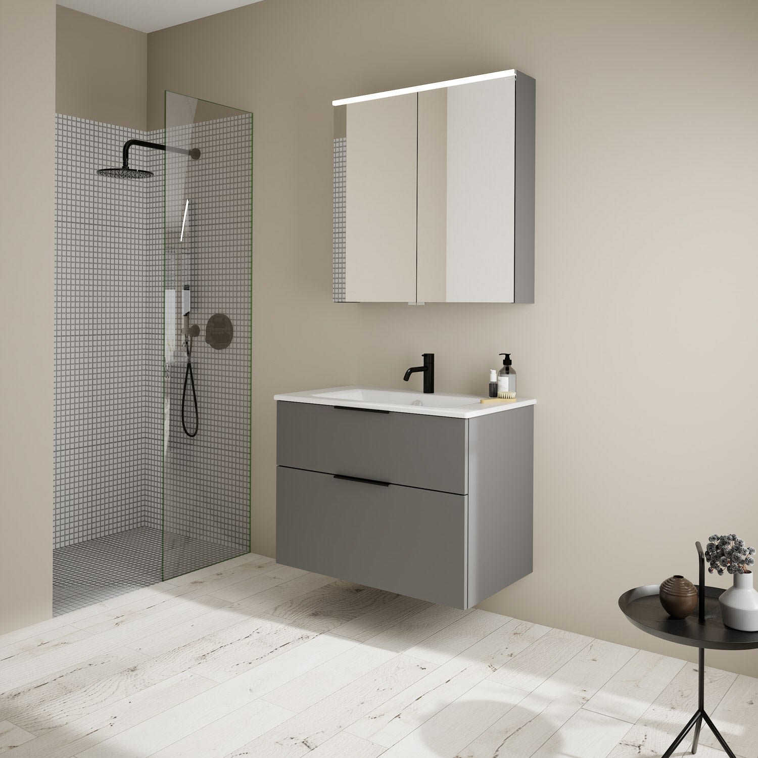 burgbad Eqio Badmöbel-Set 82 cm mit Keramik-Waschtisch Slim und Unterschrank mit Griff G0200, mit Spiegelschrank