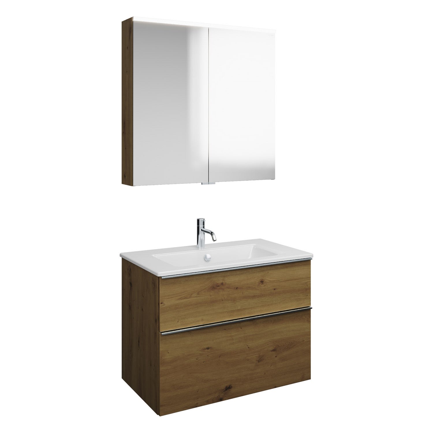 burgbad Eqio Badmöbel-Set 82 cm mit Keramik-Waschtisch Slim und Unterschrank mit Griffleiste G0251, mit Spiegelschrank