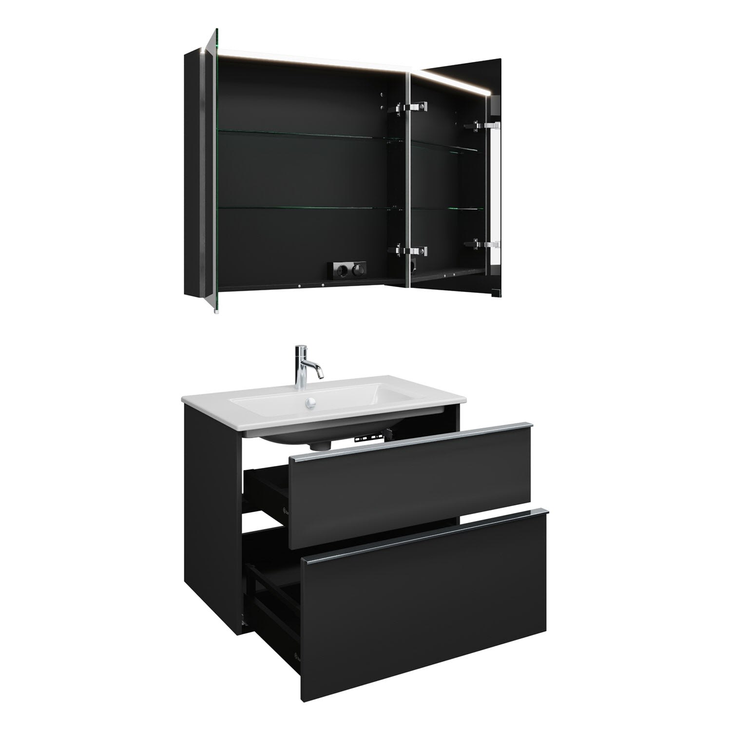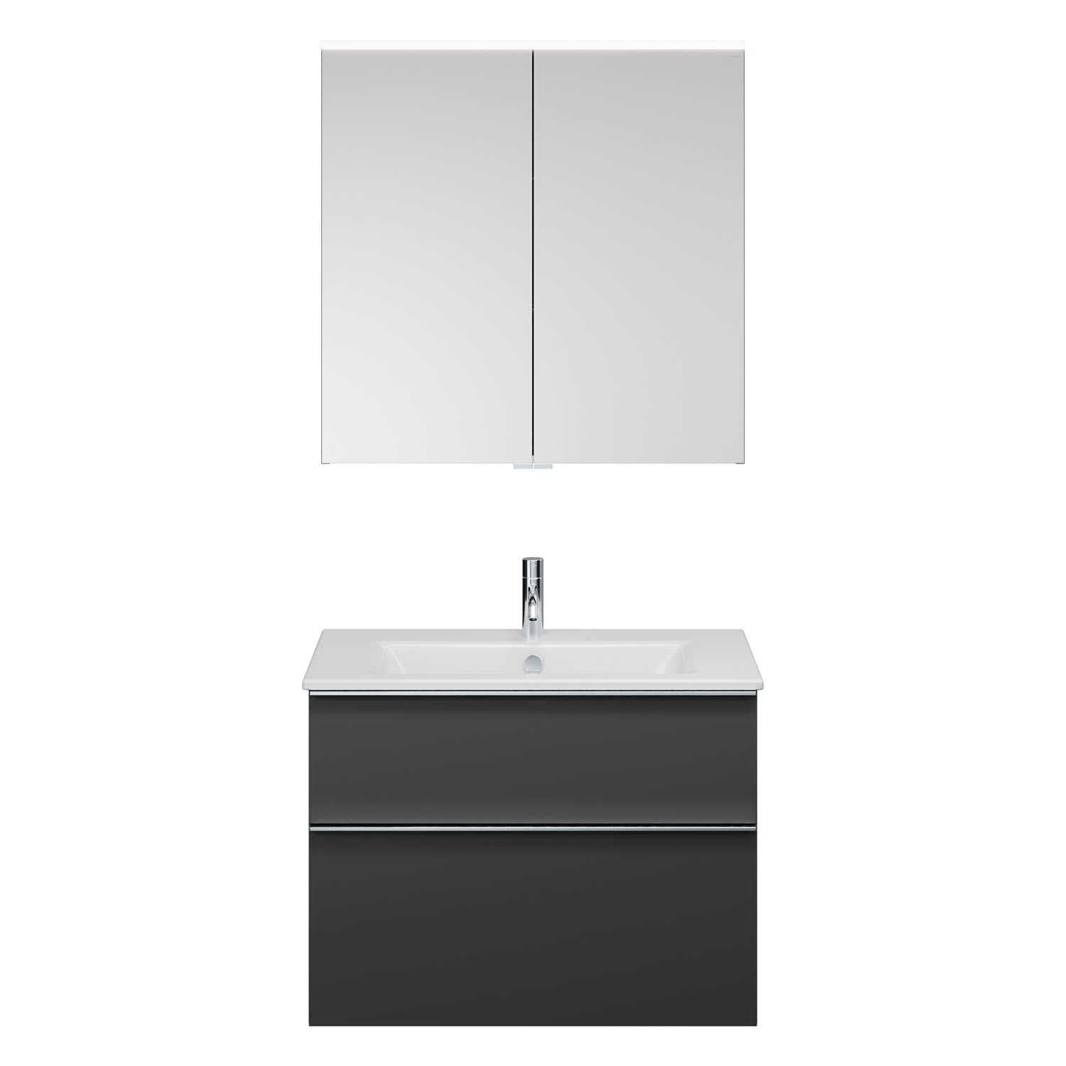 burgbad Eqio Badmöbel-Set 82 cm mit Keramik-Waschtisch Slim und Unterschrank mit Griffleiste G0251, mit Spiegelschrank