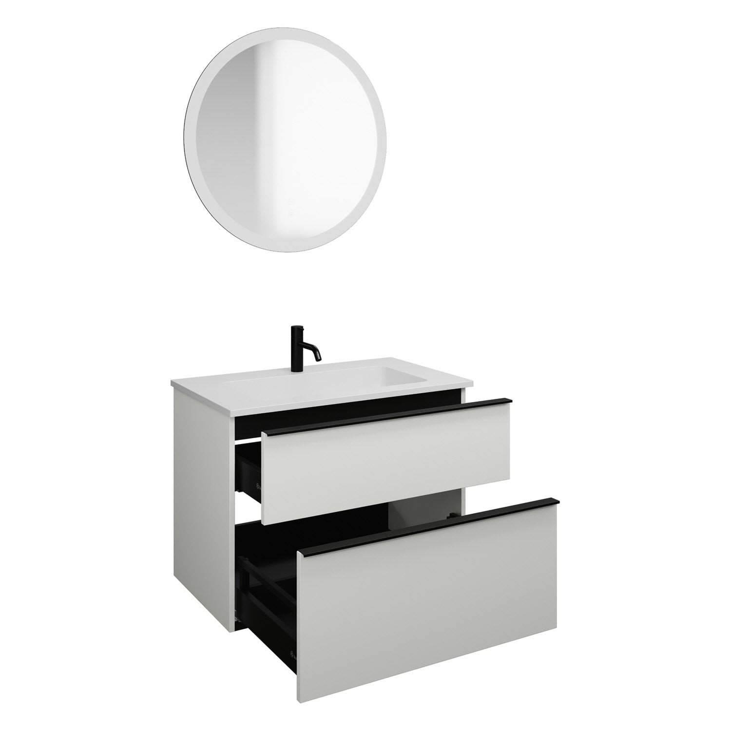 burgbad Eqio Badmöbel Set 82 cm Waschtisch und Unterschrank mit Griff G0252, mit LED-Leuchtspiegel