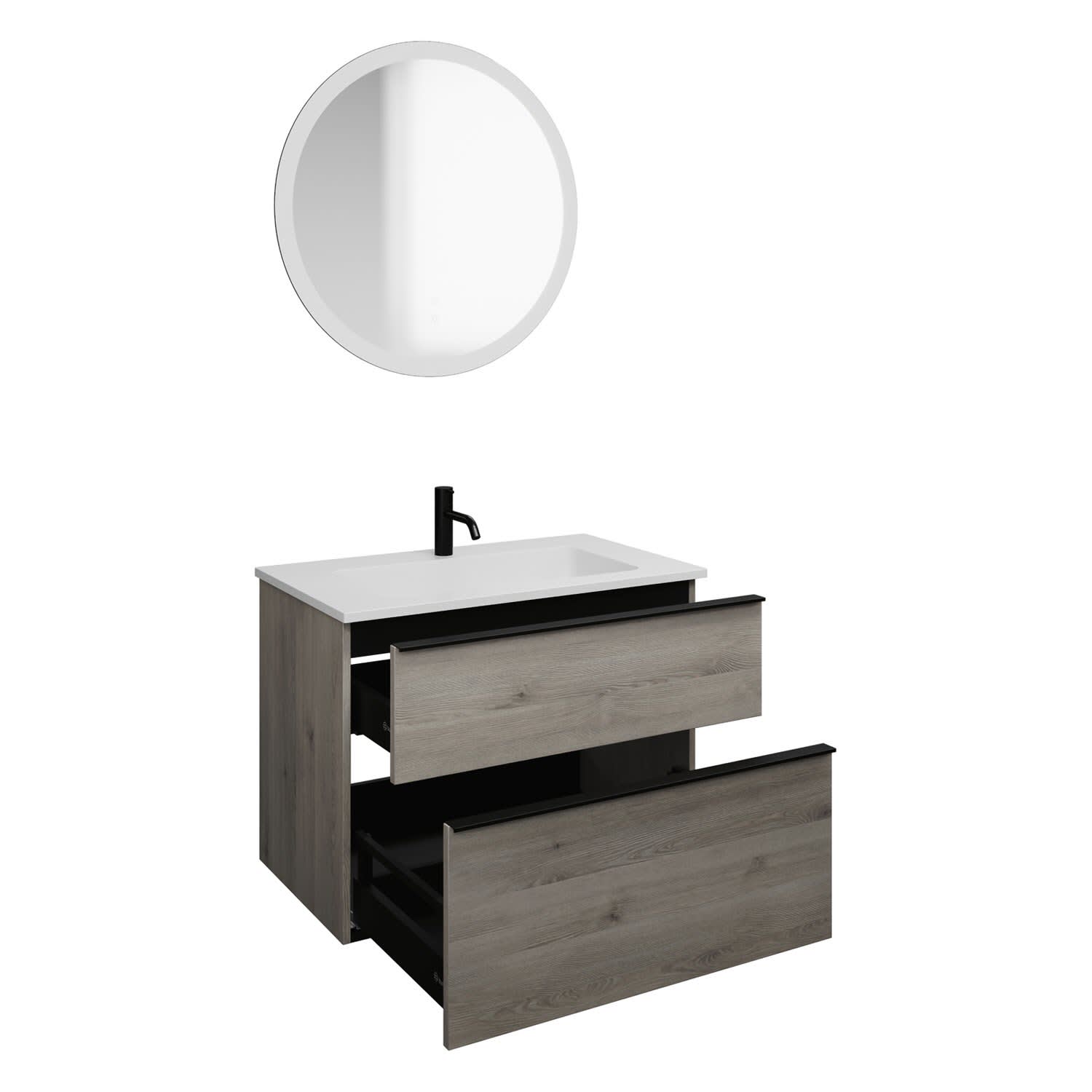 burgbad Eqio Badmöbel Set 82 cm Waschtisch und Unterschrank mit Griff G0252, mit LED-Leuchtspiegel