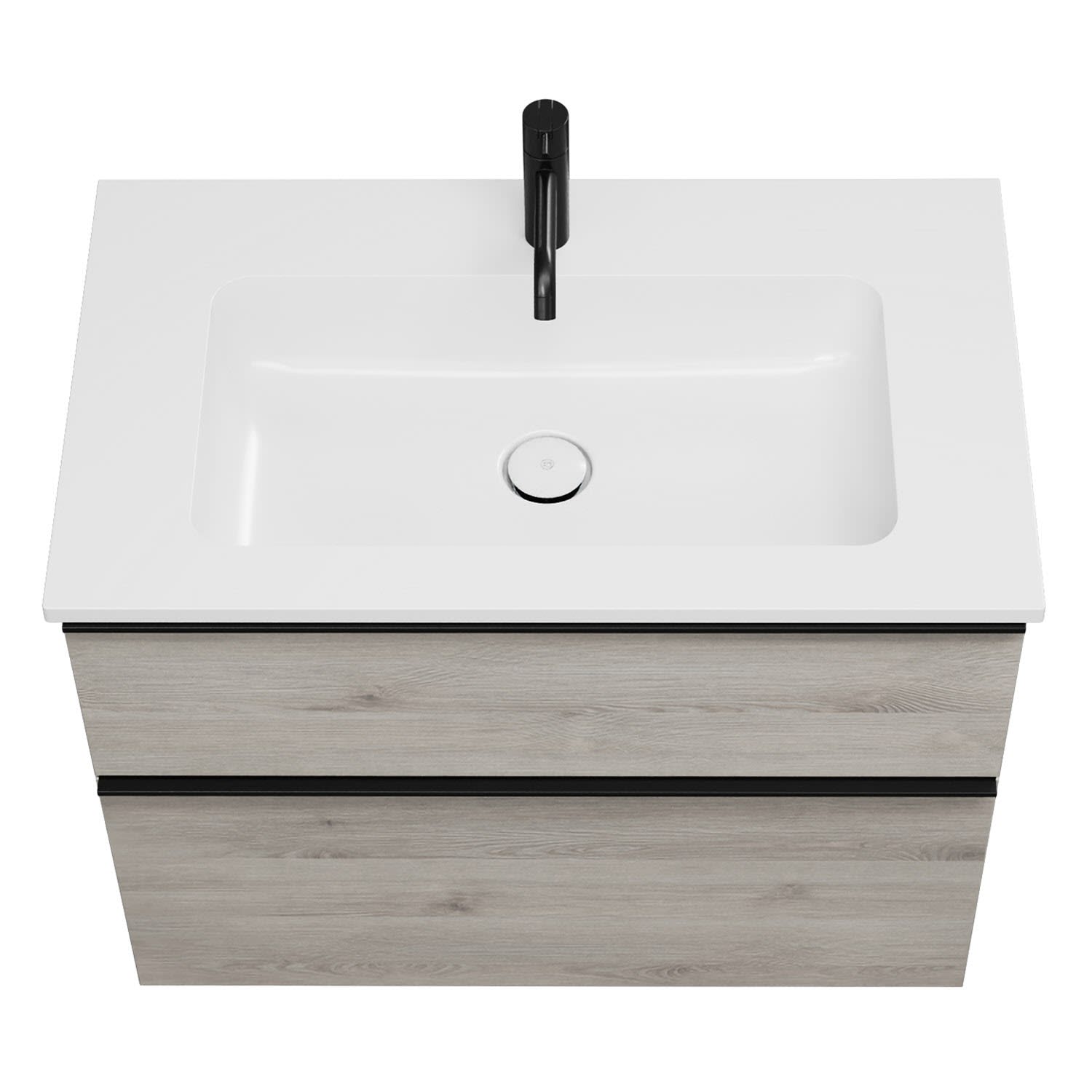 - 1 Schublade oben, 35 cm tief, mit Siphonausschnitt und Inneneinteilung