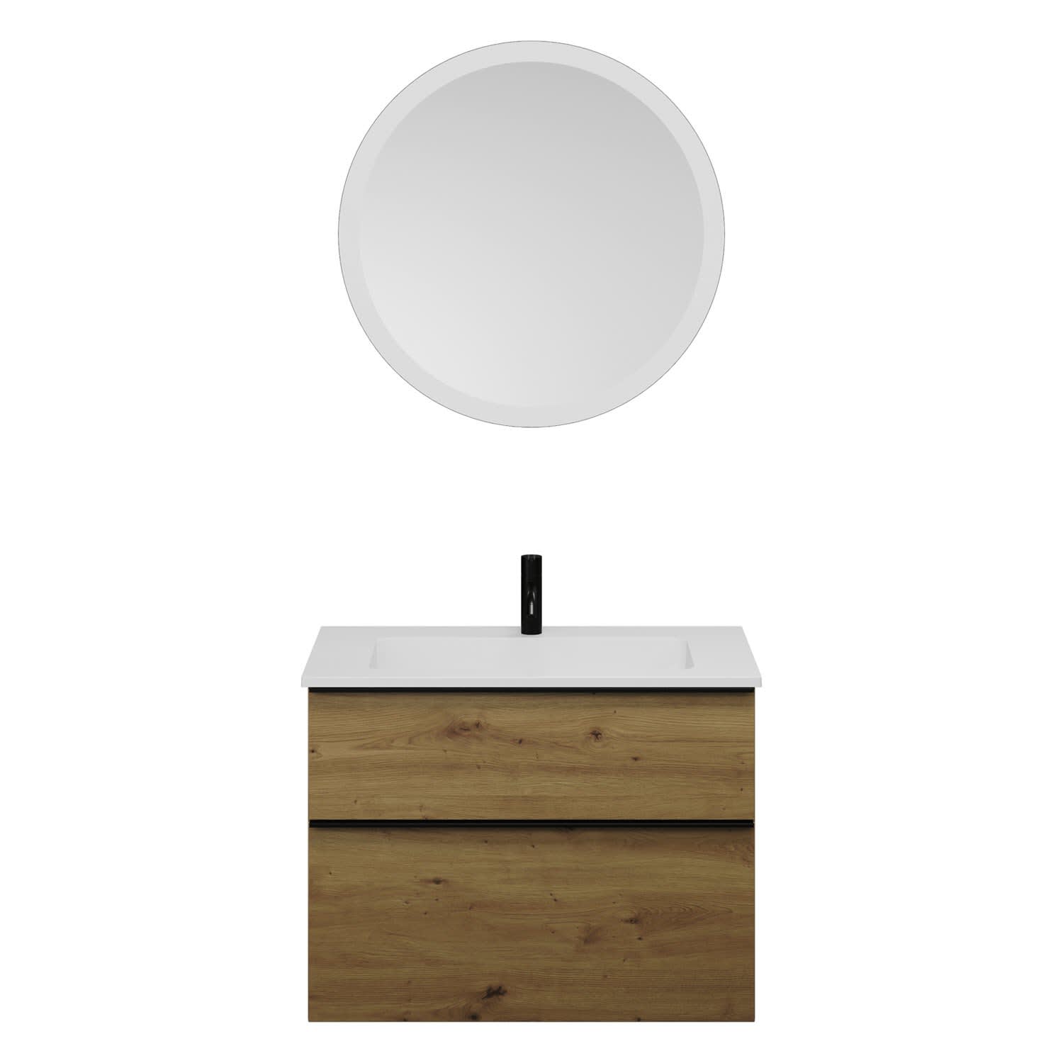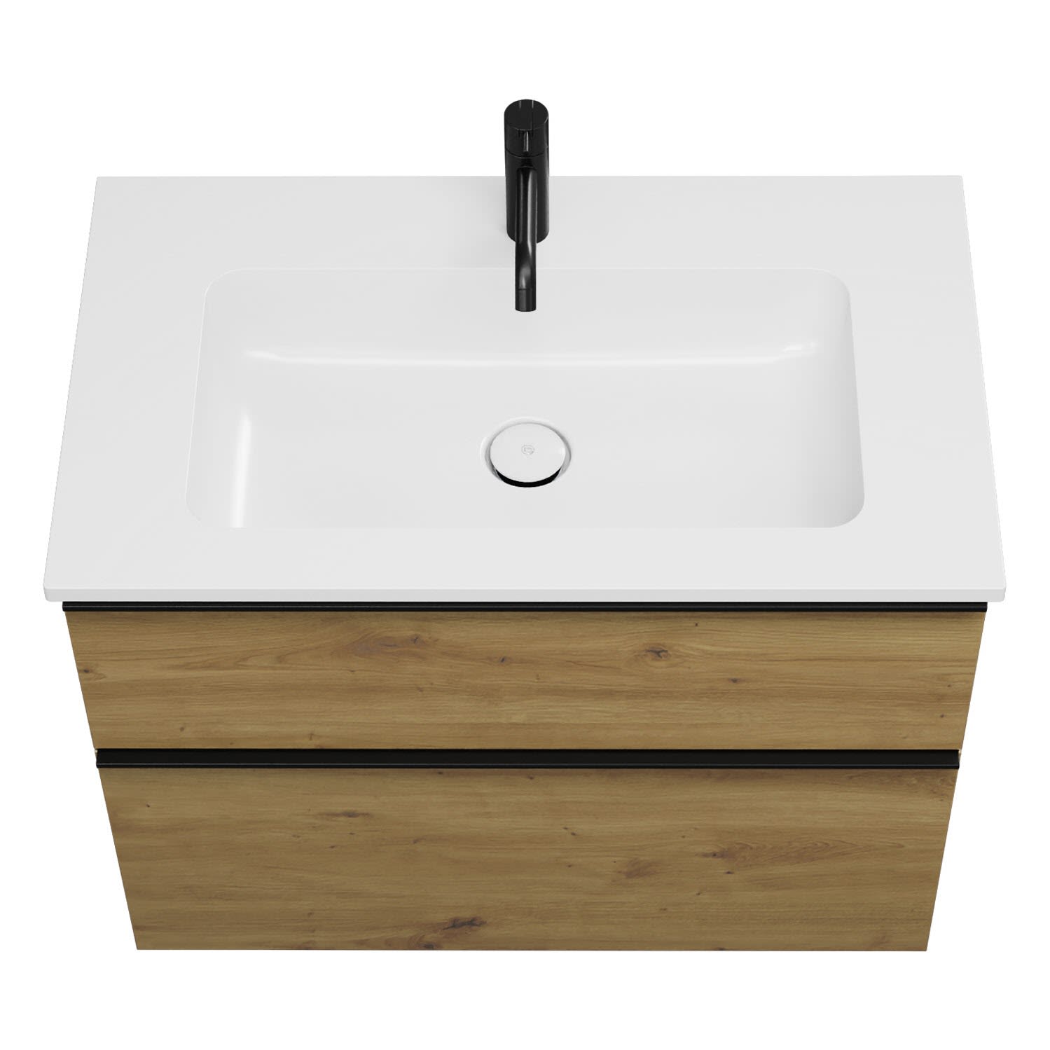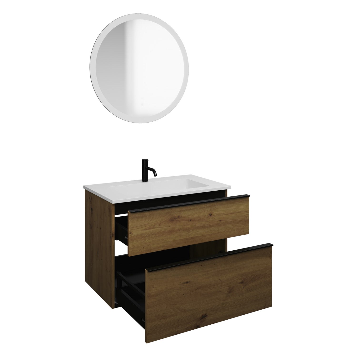 burgbad Eqio Badmöbel Set 82 cm Waschtisch und Unterschrank mit Griff G0252, mit LED-Leuchtspiegel
