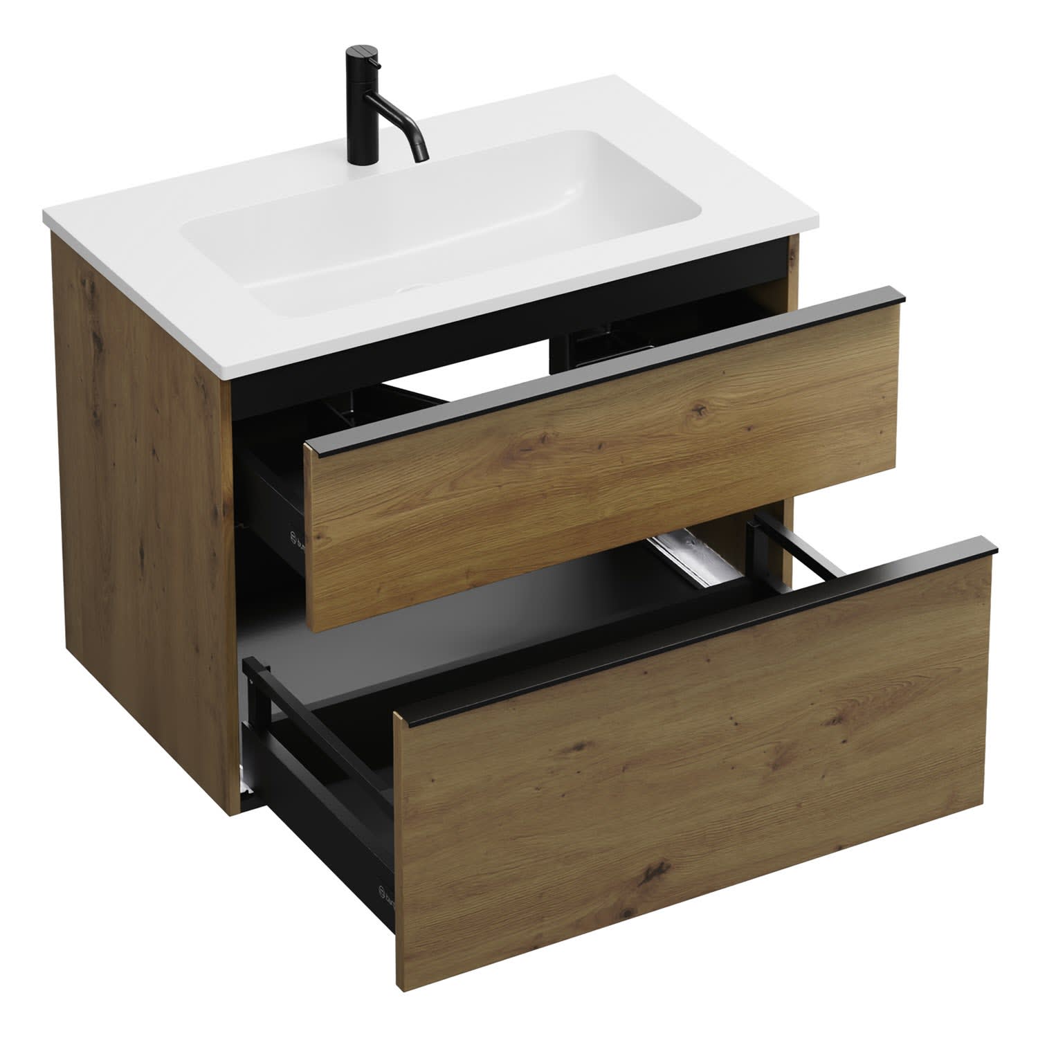 - 1 Schublade oben, 35 cm tief, mit Siphonausschnitt und Inneneinteilung