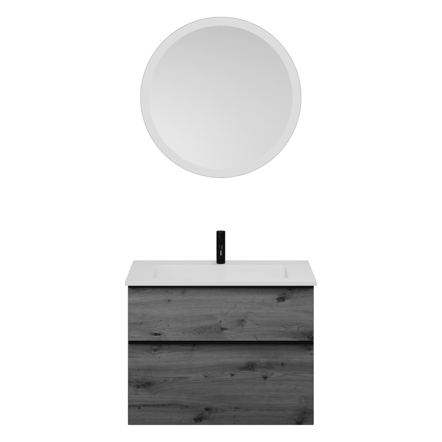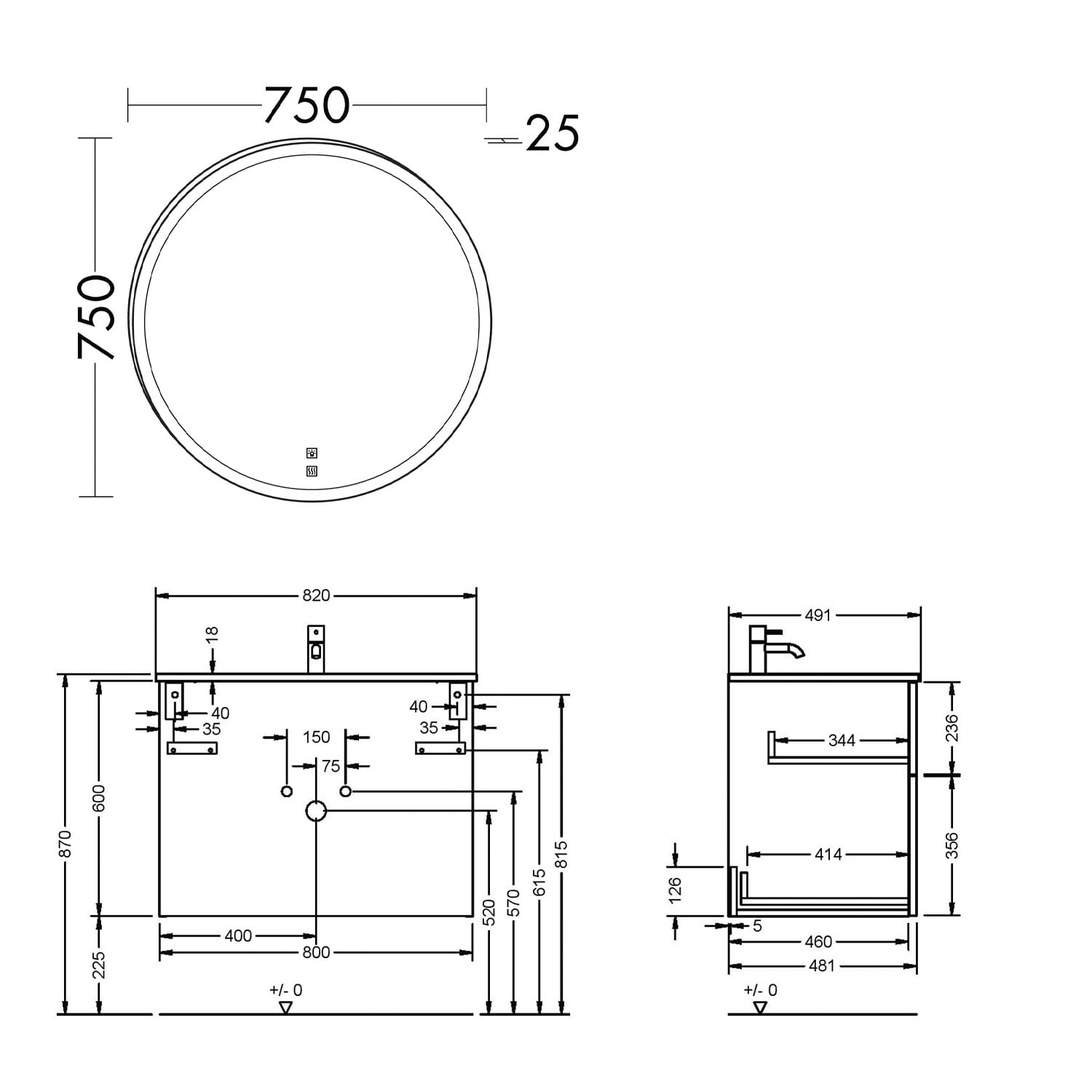 burgbad Eqio Badmöbel Set 82 cm Waschtisch und Unterschrank mit Griff G0252, mit LED-Leuchtspiegel
