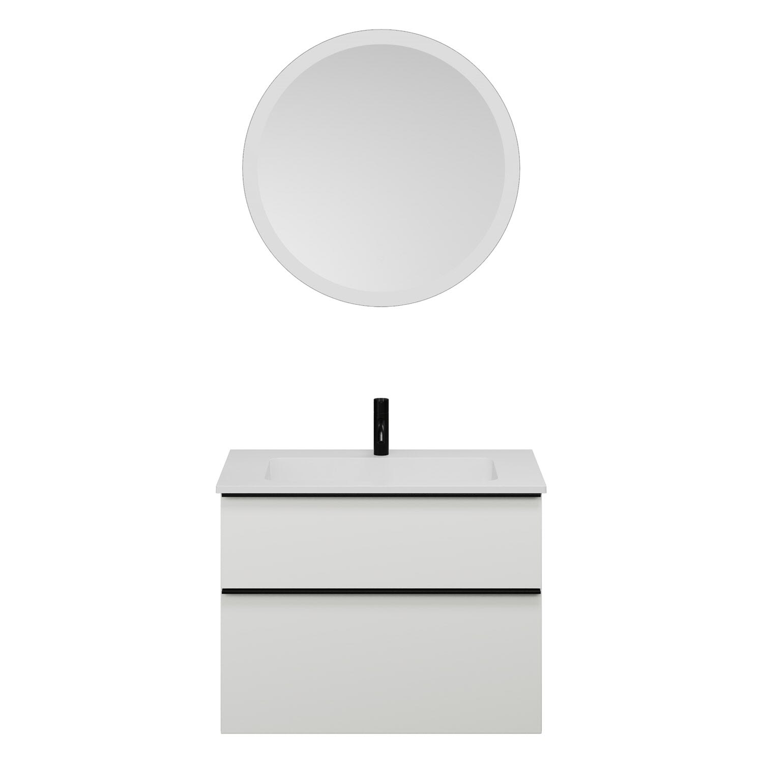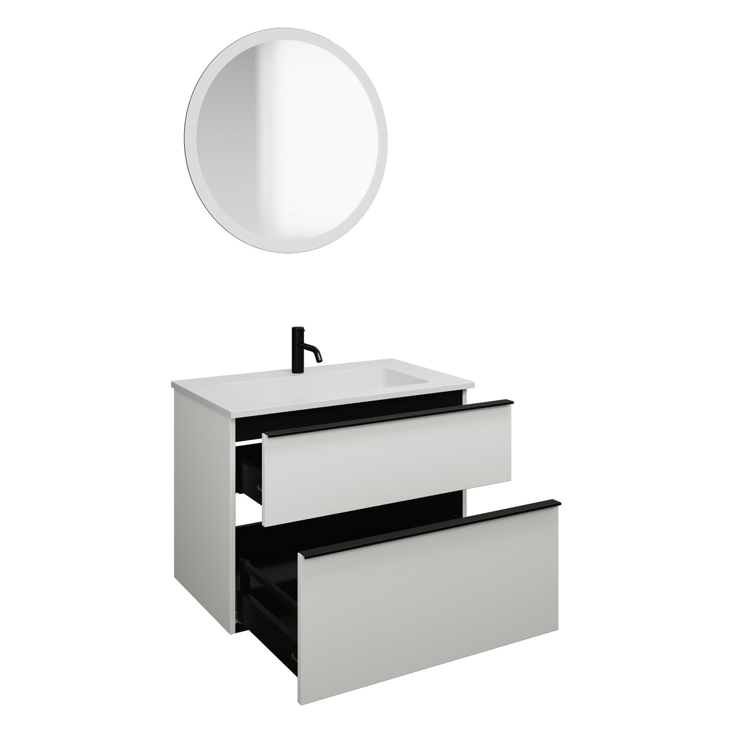 burgbad Eqio Badmöbel Set 82 cm Waschtisch und Unterschrank mit Griff G0252, mit LED-Leuchtspiegel