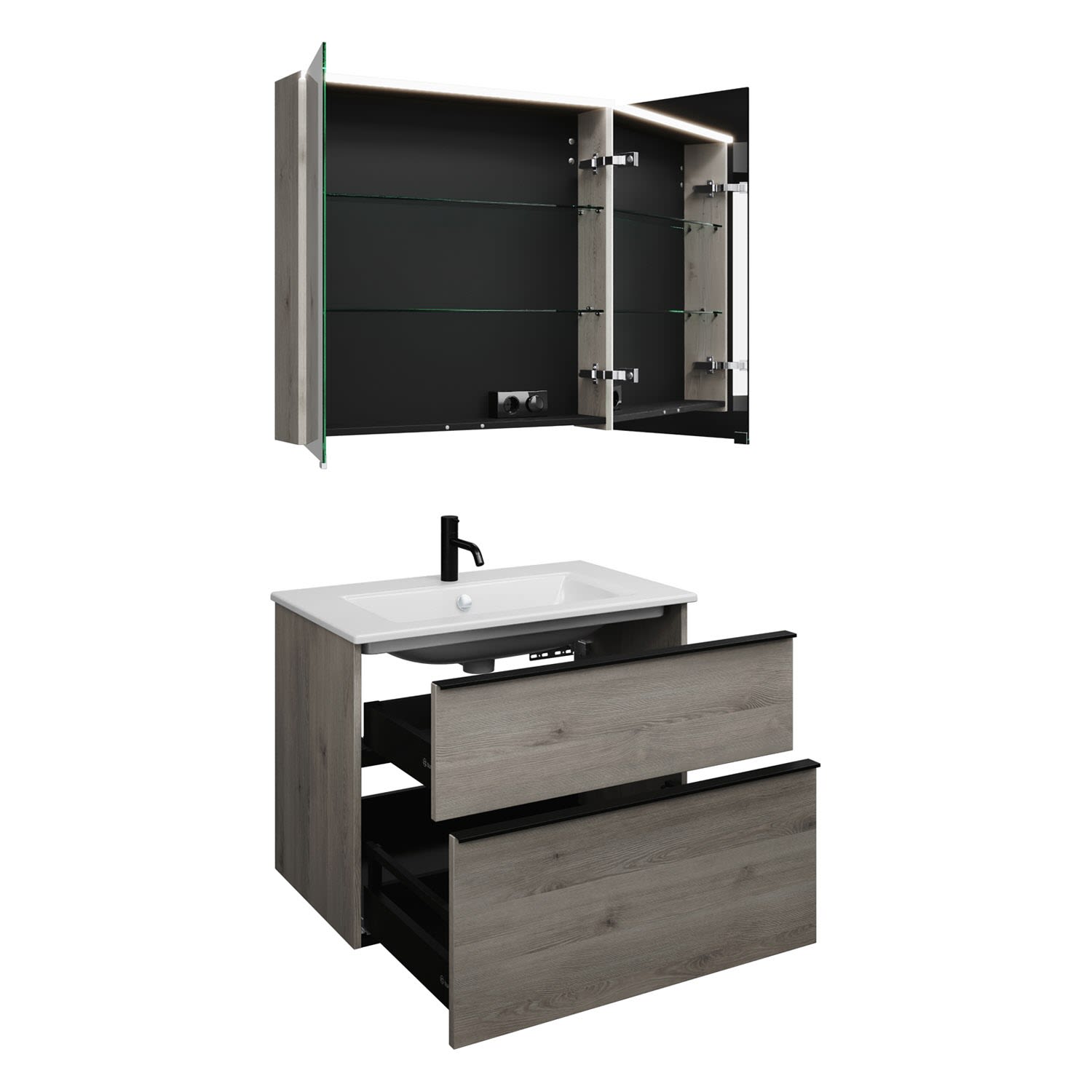 burgbad Eqio Badmöbel-Set 82 cm mit Keramik-Waschtisch Slim und Unterschrank mit Griffleiste G0252, mit Spiegelschrank