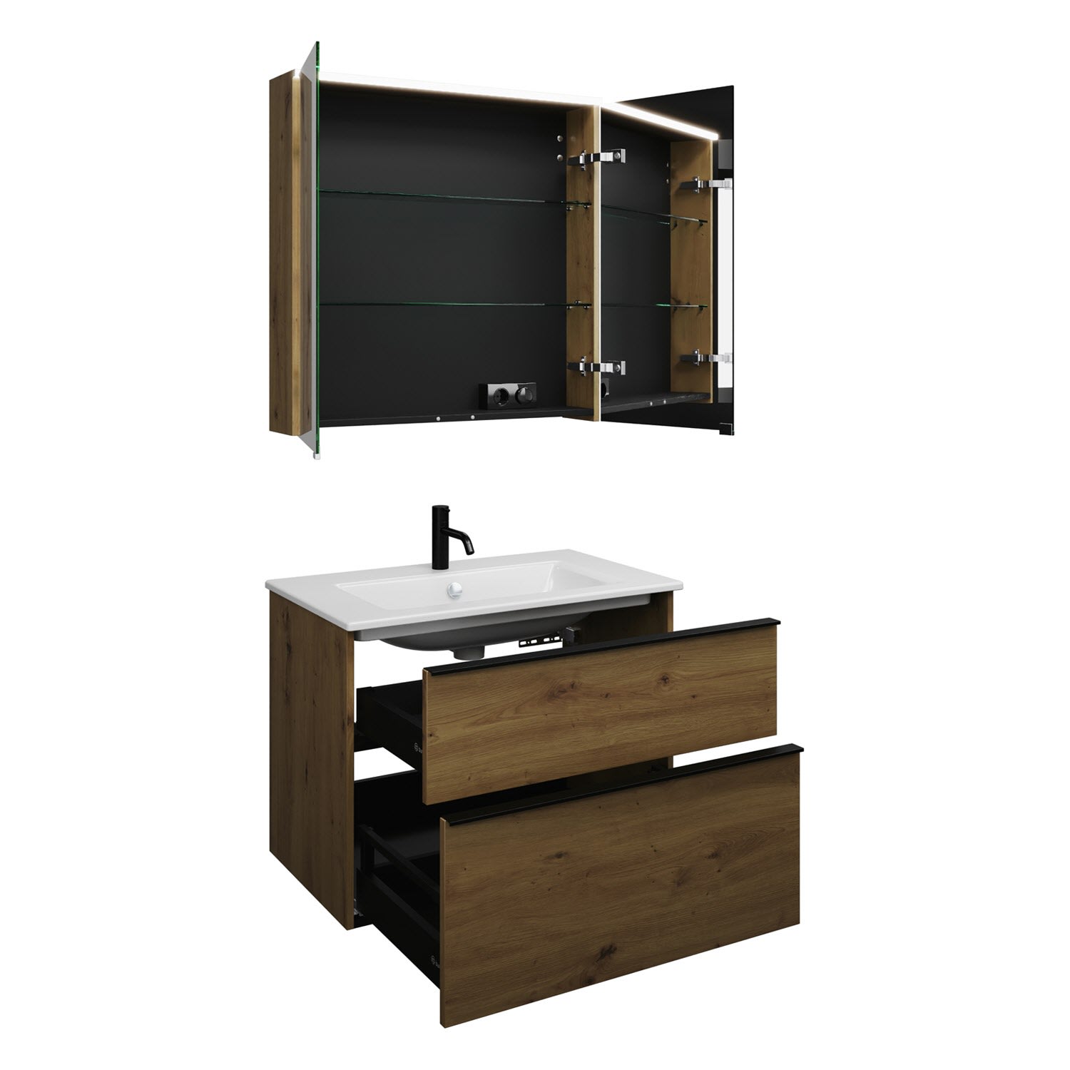 burgbad Eqio Badmöbel-Set 82 cm mit Keramik-Waschtisch Slim und Unterschrank mit Griffleiste G0252, mit Spiegelschrank