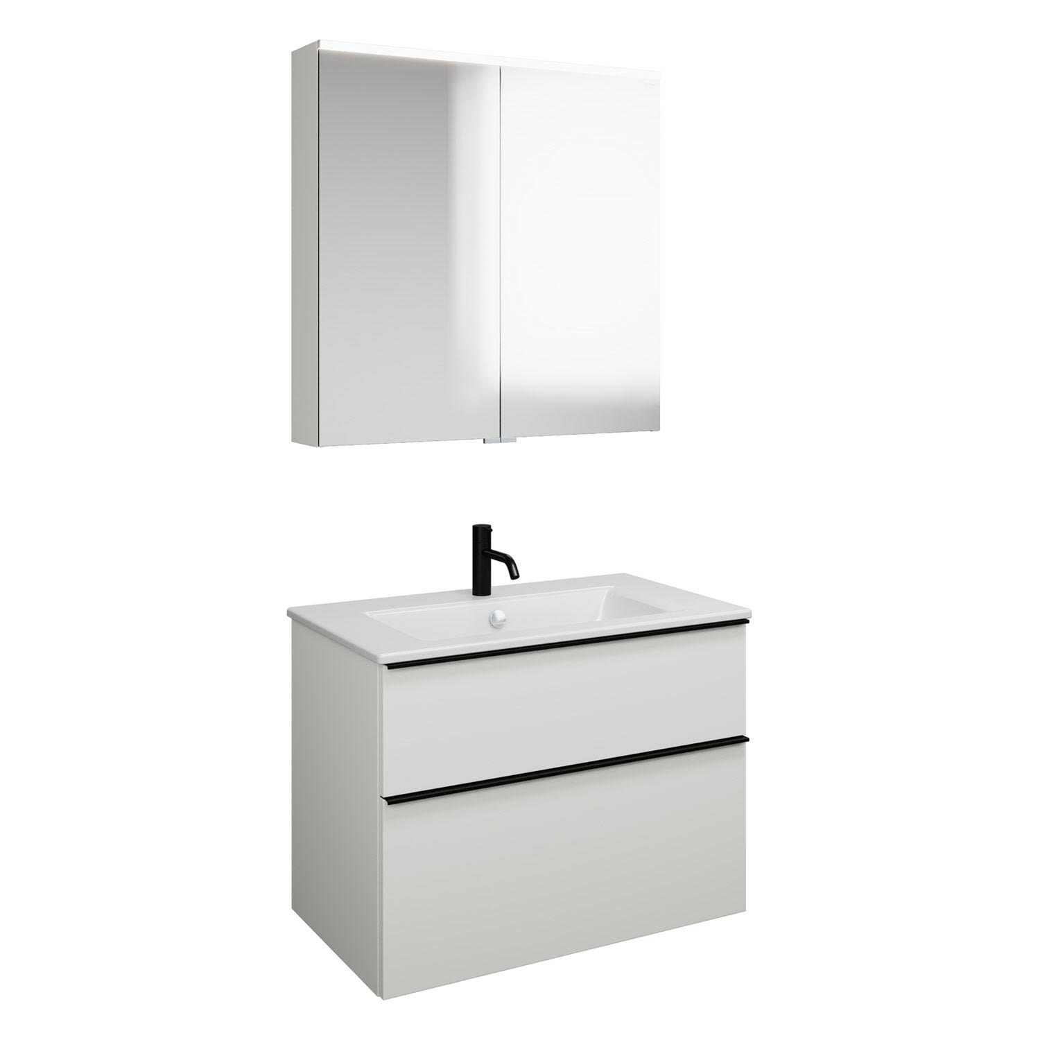 burgbad Eqio Badmöbel-Set 82 cm mit Keramik-Waschtisch Slim und Unterschrank mit Griffleiste G0252, mit Spiegelschrank