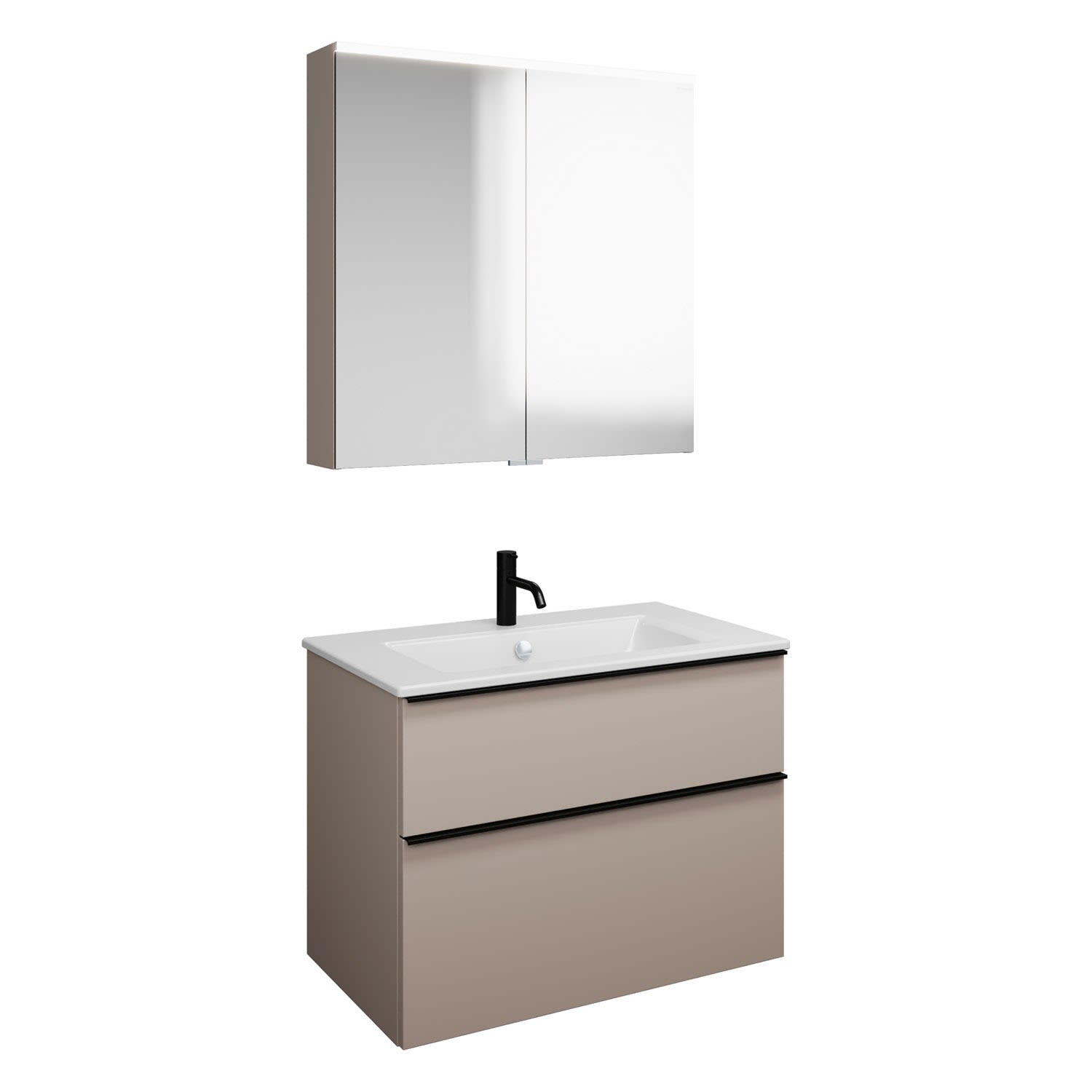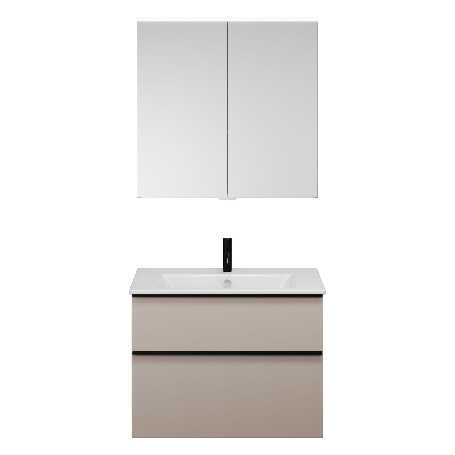 burgbad Eqio Badmöbel-Set 82 cm mit Keramik-Waschtisch Slim und Unterschrank mit Griffleiste G0252, mit Spiegelschrank