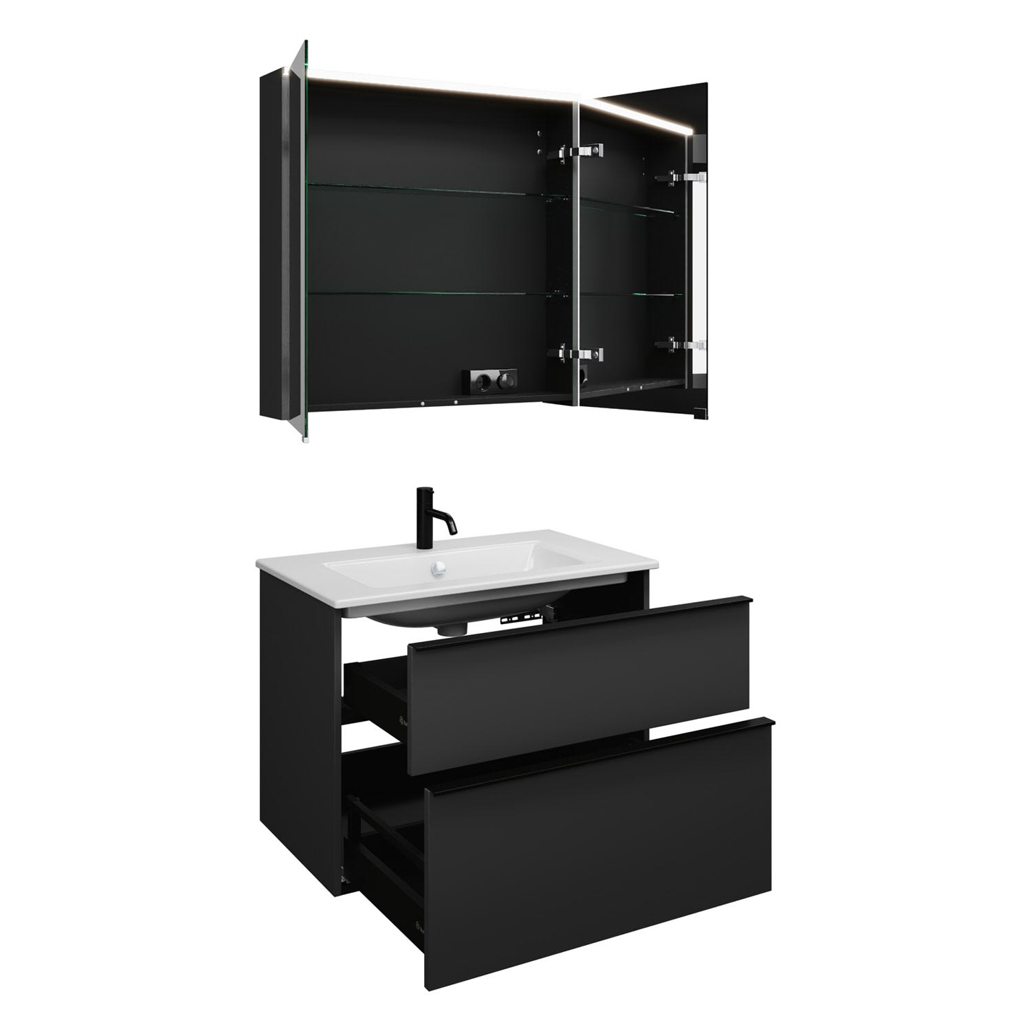 burgbad Eqio Badmöbel-Set 82 cm mit Keramik-Waschtisch Slim und Unterschrank mit Griffleiste G0252, mit Spiegelschrank