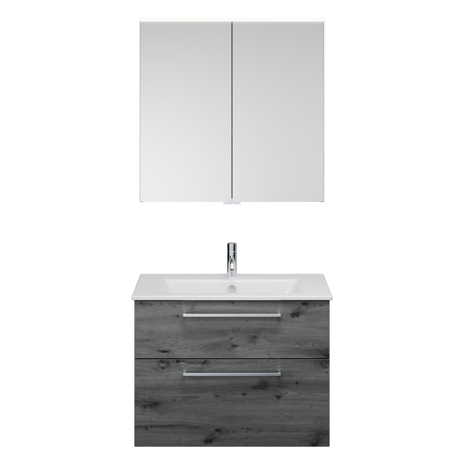 burgbad Eqio Badmöbel-Set 82 cm mit Keramik-Waschtisch Slim und Unterschrank mit Stangengriff P95, mit Spiegelschrank