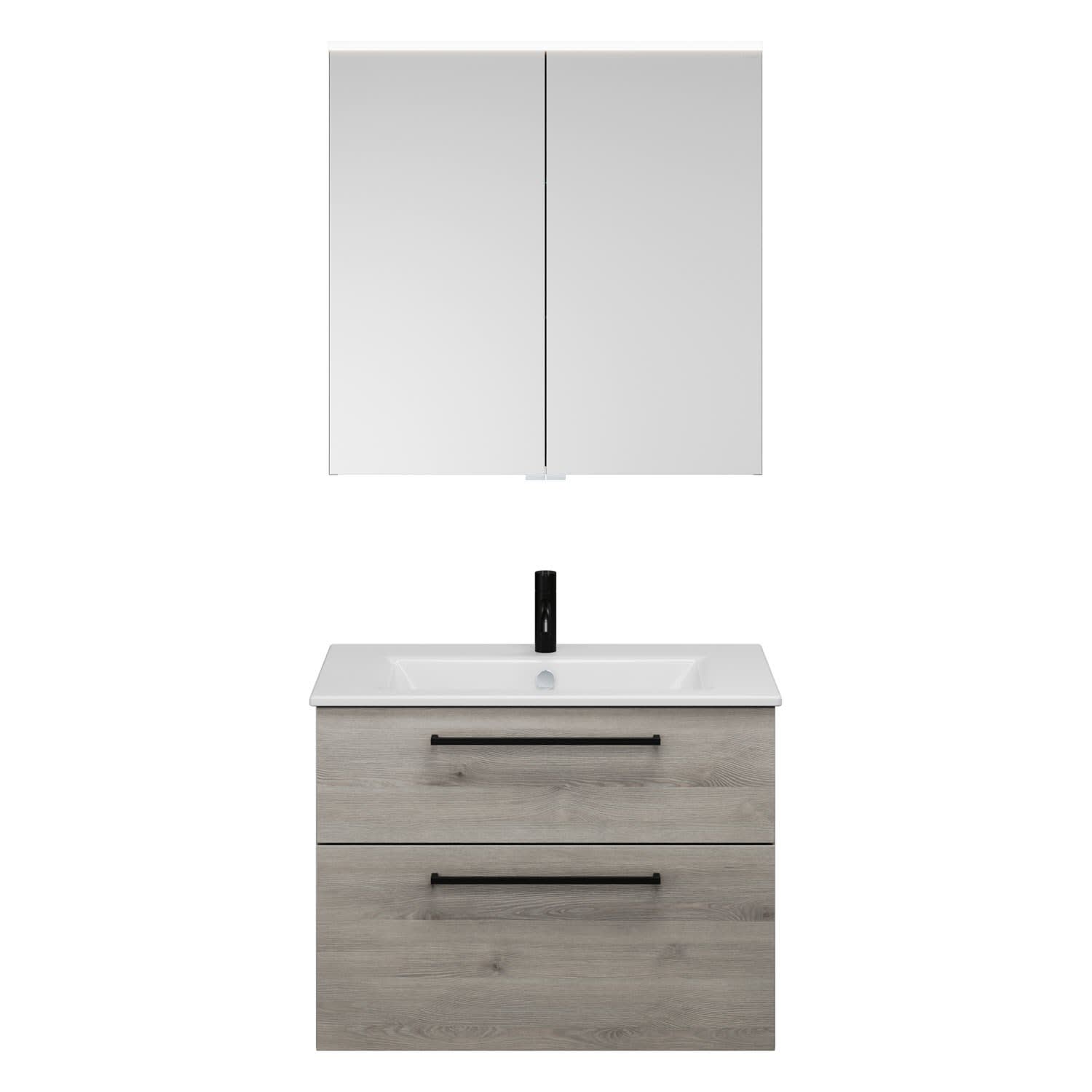 burgbad Eqio Badmöbel-Set 82 cm mit Keramik-Waschtisch Slim und Unterschrank mit Stangengriff G0234, mit Spiegelschrank