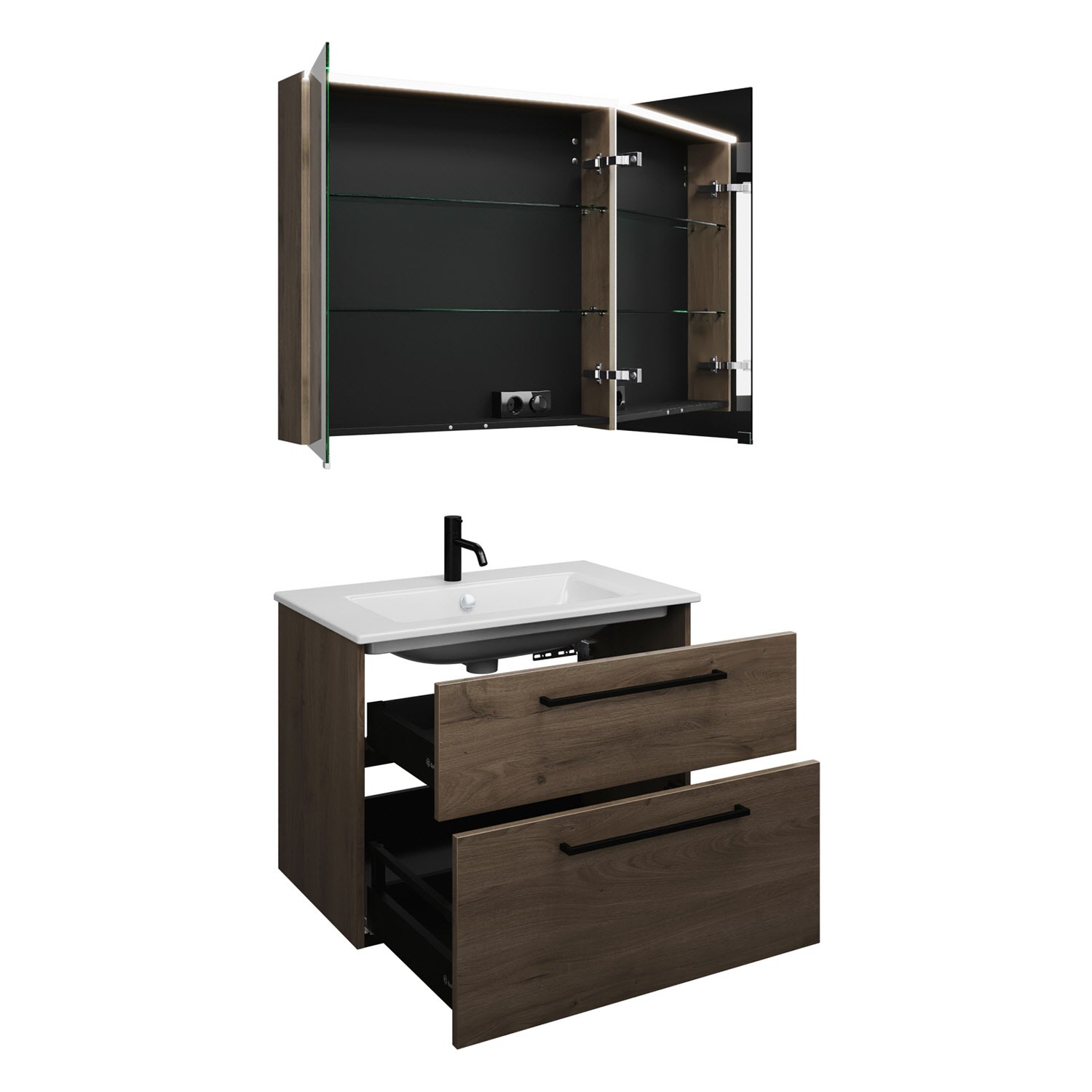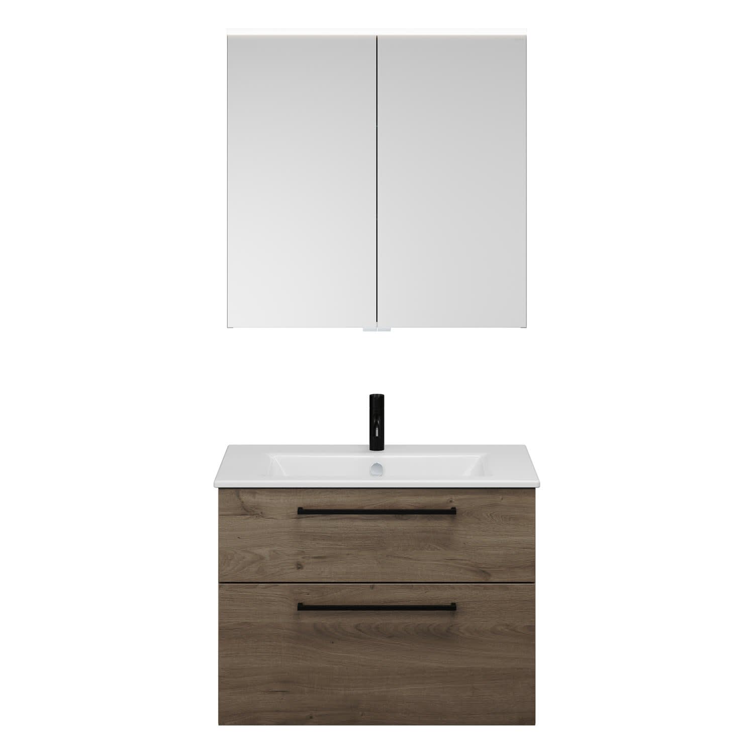 burgbad Eqio Badmöbel-Set 82 cm mit Keramik-Waschtisch Slim und Unterschrank mit Stangengriff G0234, mit Spiegelschrank