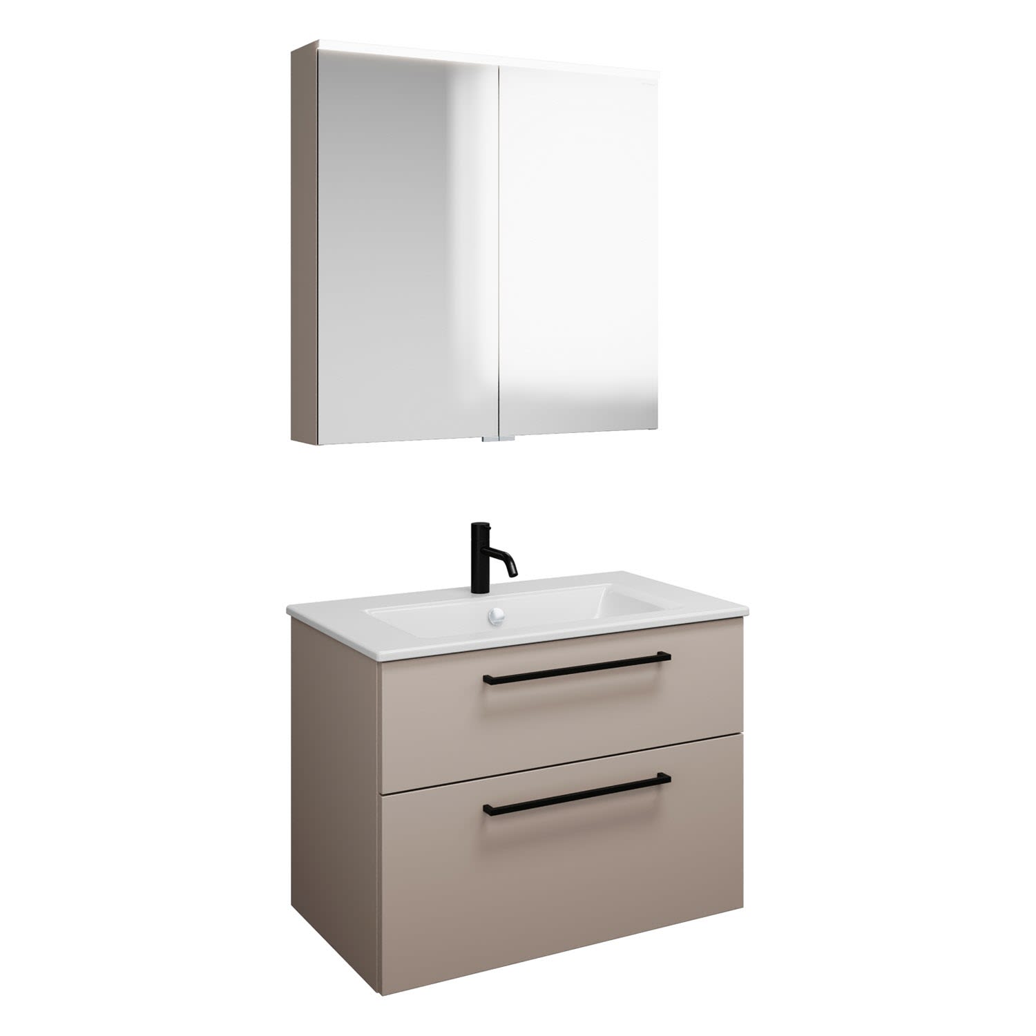 burgbad Eqio Badmöbel-Set 82 cm mit Keramik-Waschtisch Slim und Unterschrank mit Stangengriff G0234, mit Spiegelschrank