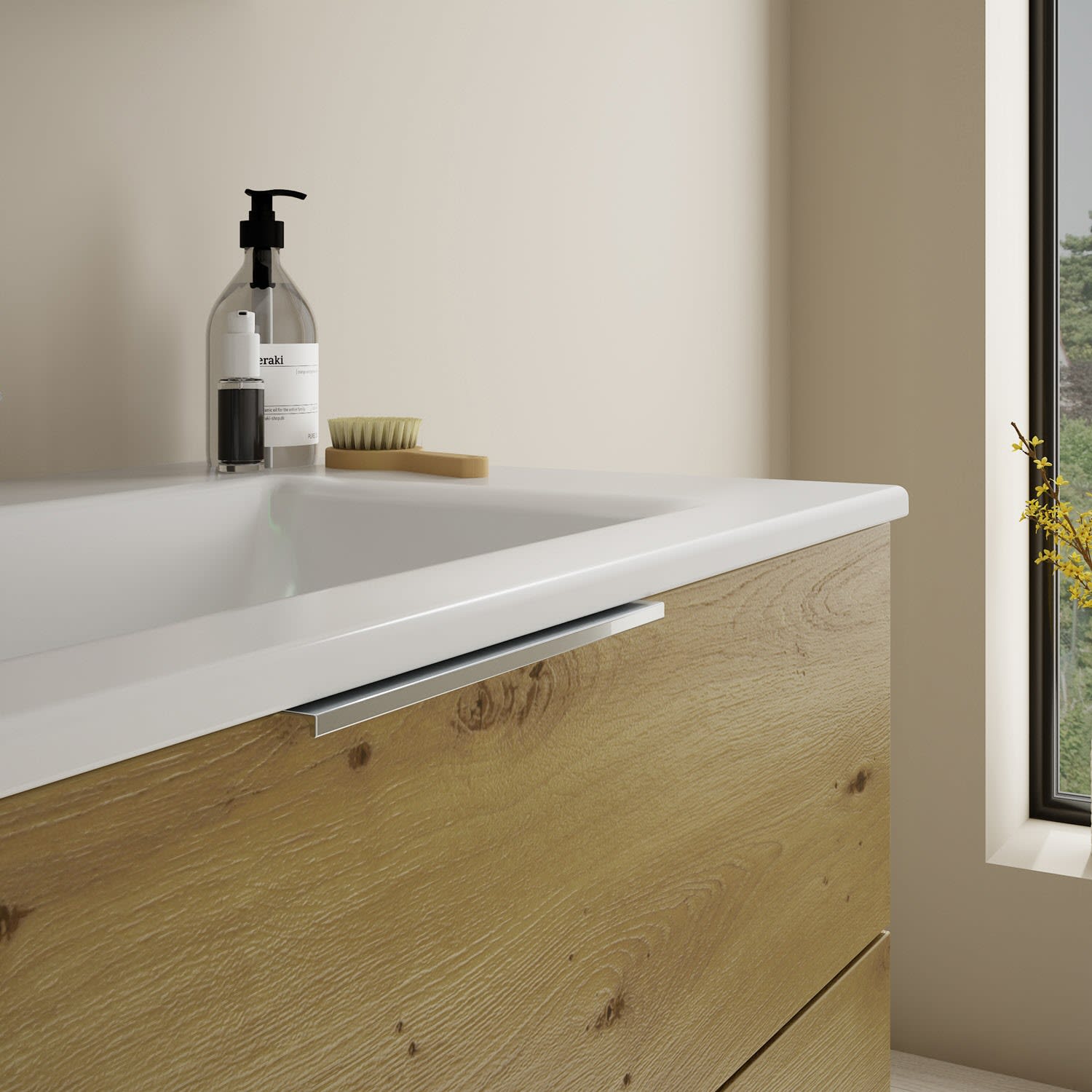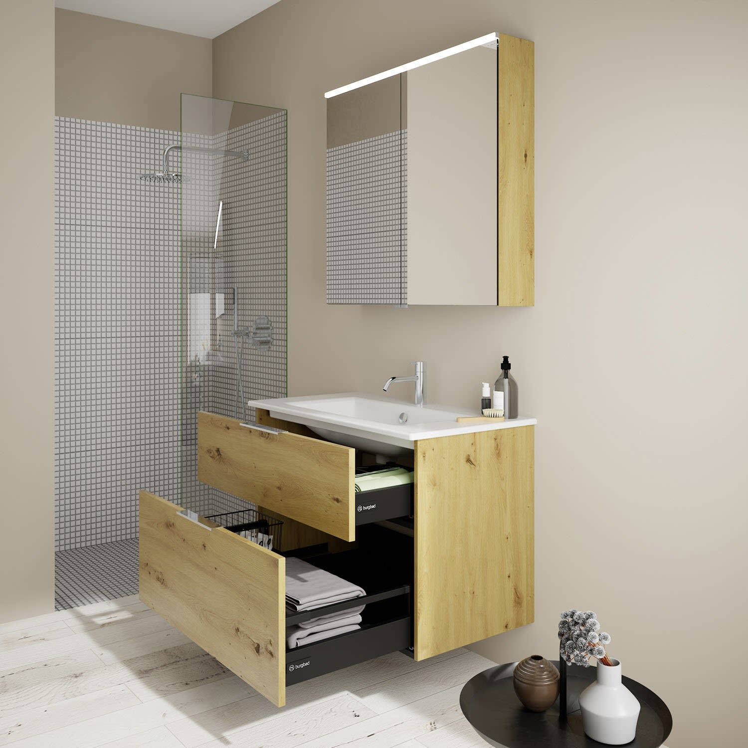 burgbad Eqio Badmöbel-Set 92 cm mit Keramik-Waschtisch Slim und Unterschrank mit Griff G0146, mit Spiegelschrank