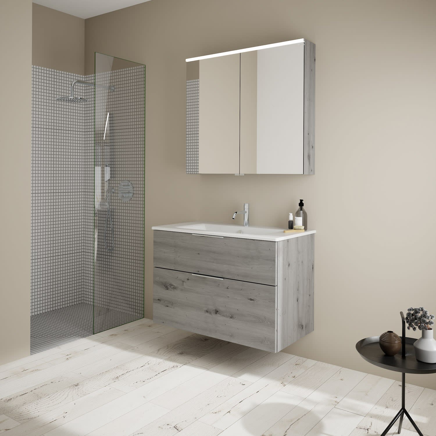 - Spiegelschrank, Waschtischunterschrank, Waschtisch, Befestigung außer Stockschrauben