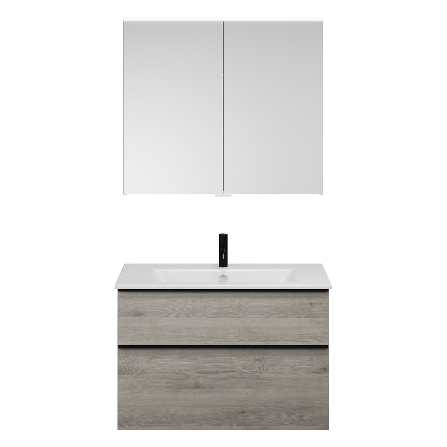 burgbad Eqio Badmöbel-Set 92 cm mit Keramik-Waschtisch Slim und Unterschrank mit Griffleiste G0252, mit Spiegelschrank