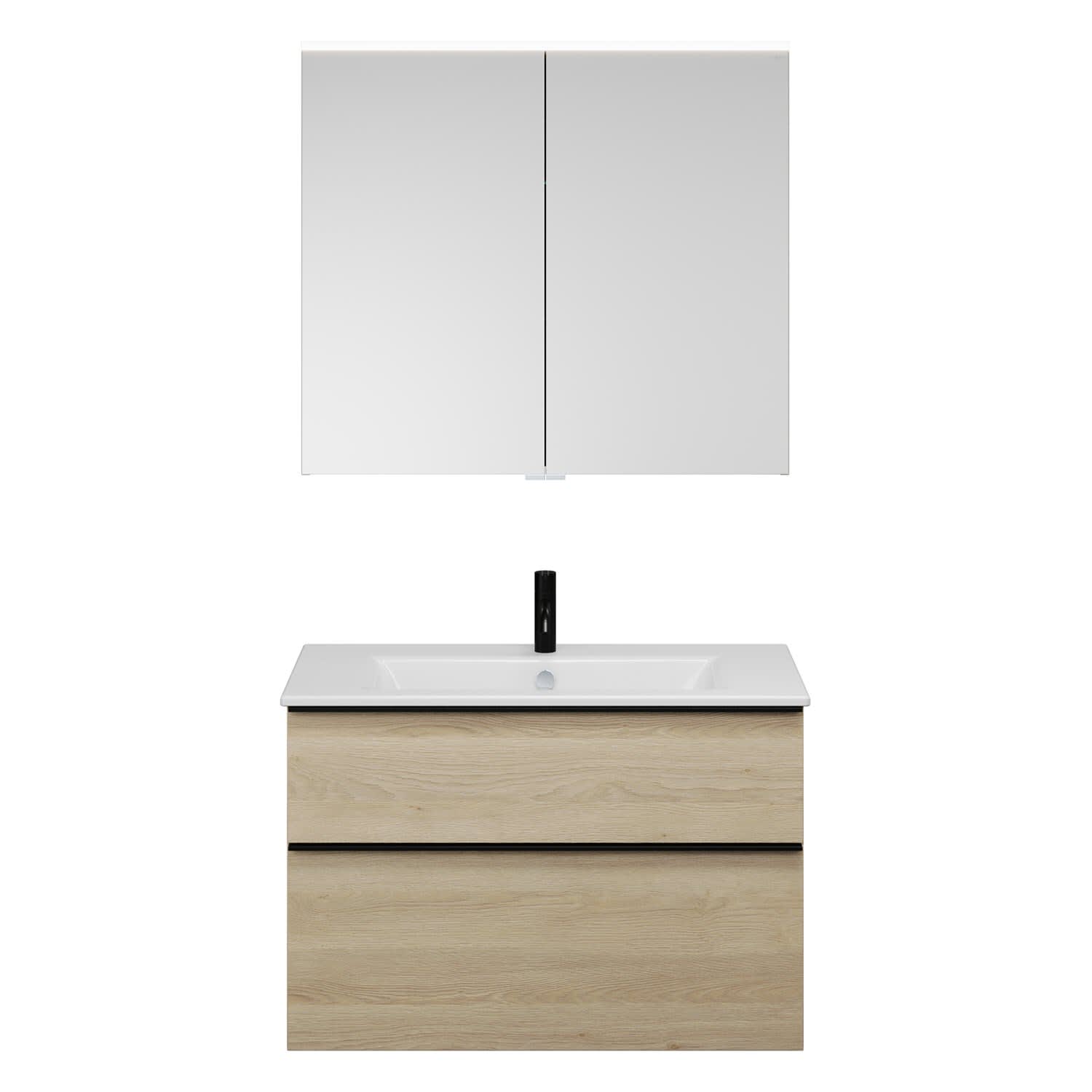 burgbad Eqio Badmöbel-Set 92 cm mit Keramik-Waschtisch Slim und Unterschrank mit Griffleiste G0252, mit Spiegelschrank