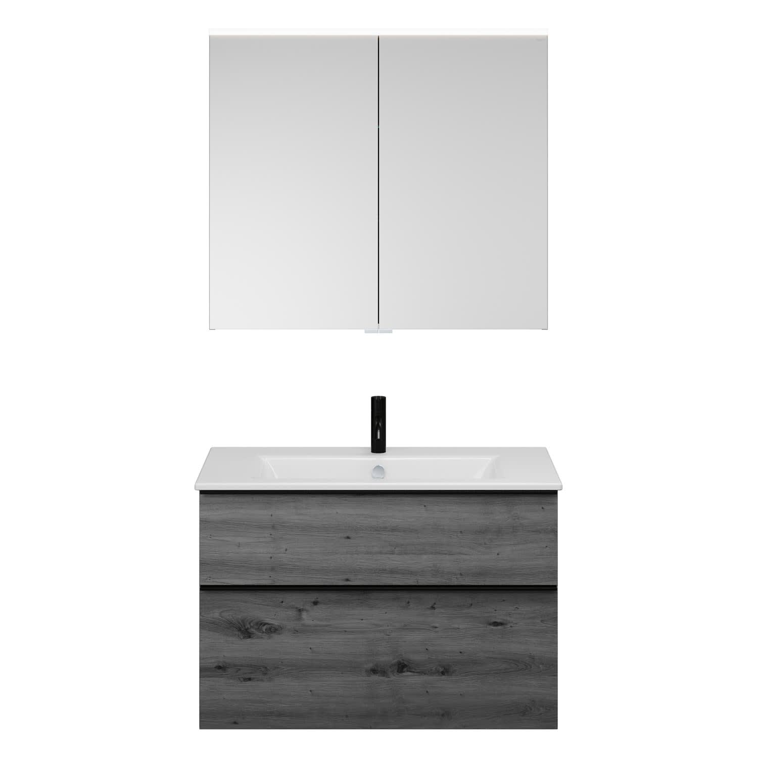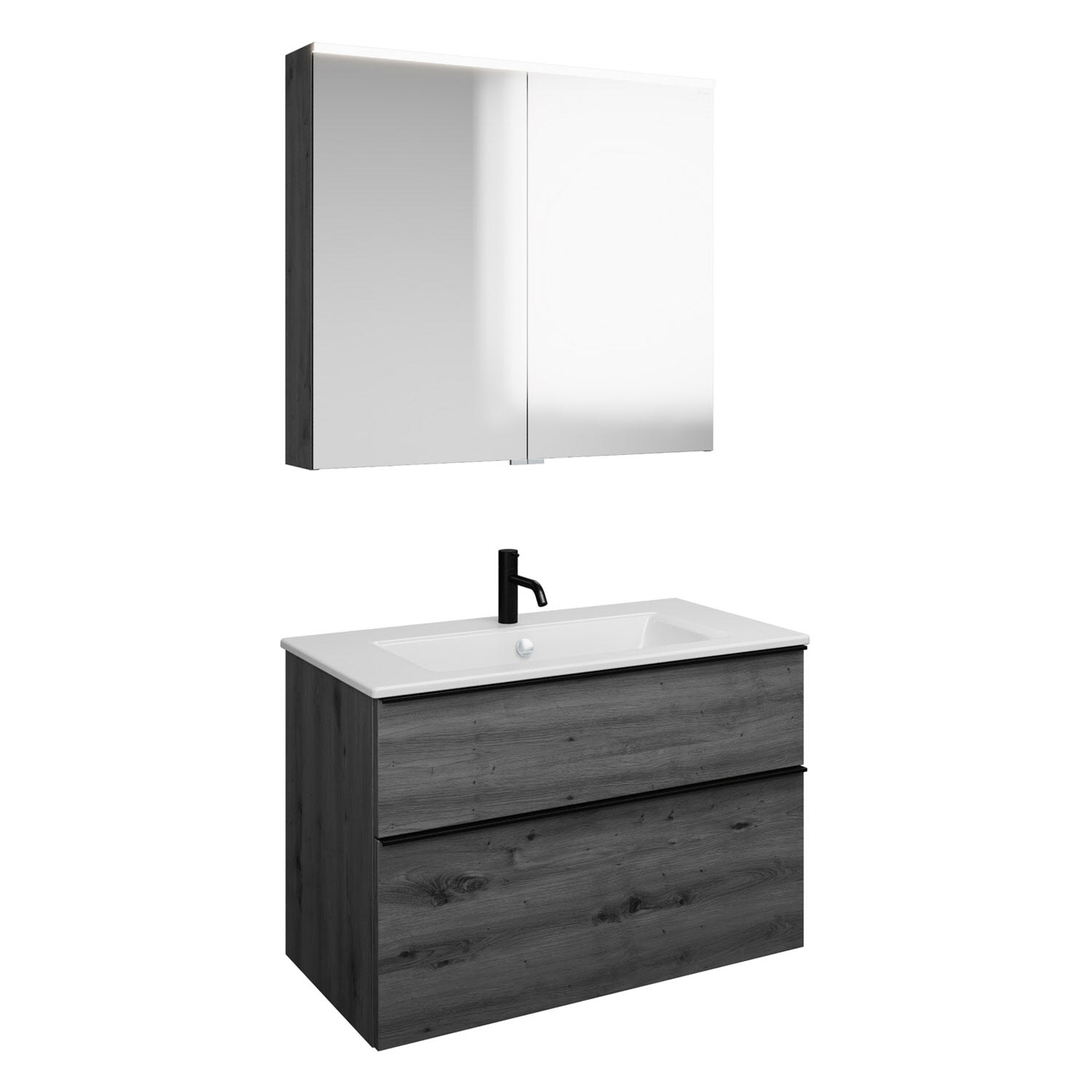 burgbad Eqio Badmöbel-Set 92 cm mit Keramik-Waschtisch Slim und Unterschrank mit Griffleiste G0252, mit Spiegelschrank