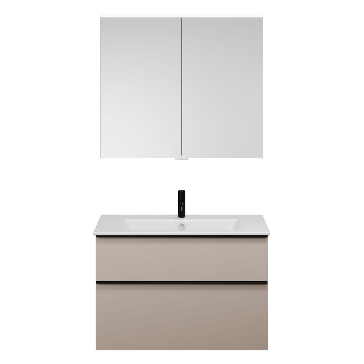 burgbad Eqio Badmöbel-Set 92 cm mit Keramik-Waschtisch Slim und Unterschrank mit Griffleiste G0252, mit Spiegelschrank