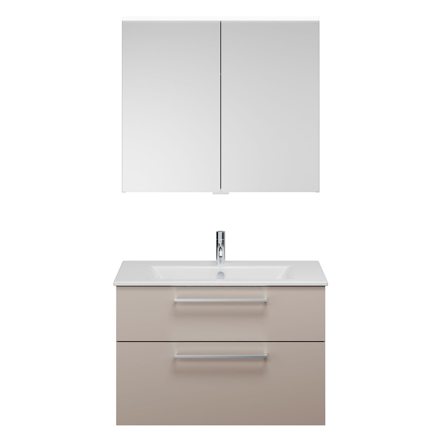 burgbad Eqio Badmöbel-Set 92 cm mit Keramik-Waschtisch Slim und Unterschrank mit Stangengriff P95, mit Spiegelschrank