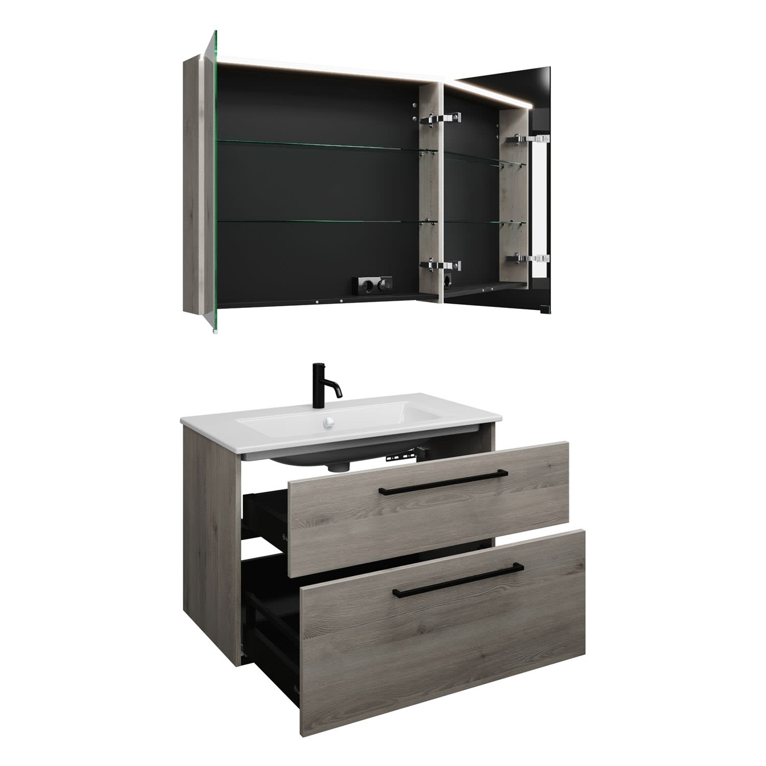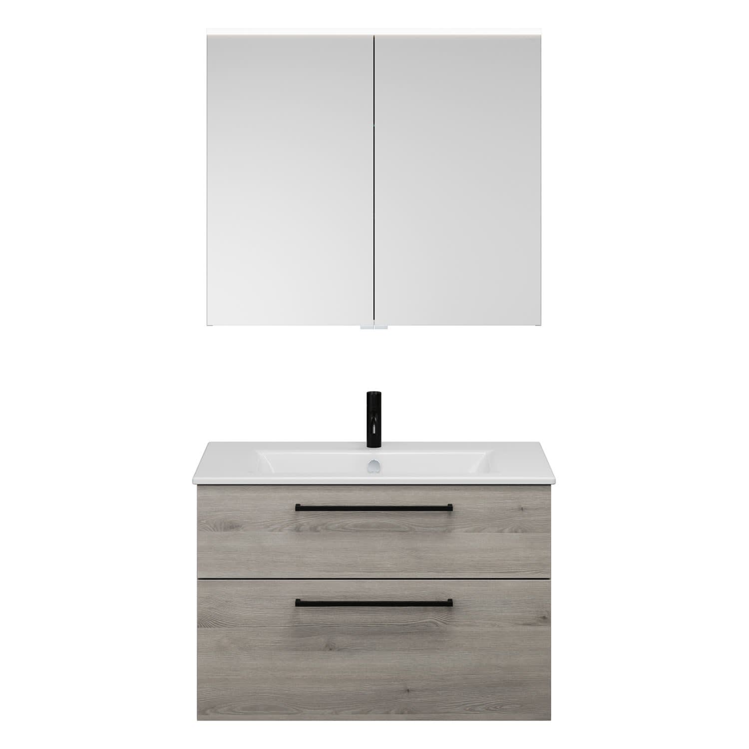 burgbad Eqio Badmöbel-Set 92 cm mit Keramik-Waschtisch Slim und Unterschrank mit Stangengriff G0234, mit Spiegelschrank