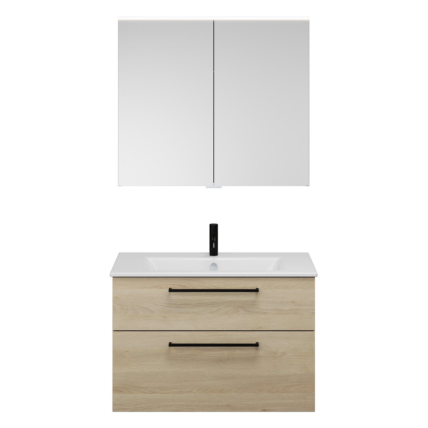 burgbad Eqio Badmöbel-Set 92 cm mit Keramik-Waschtisch Slim und Unterschrank mit Stangengriff G0234, mit Spiegelschrank