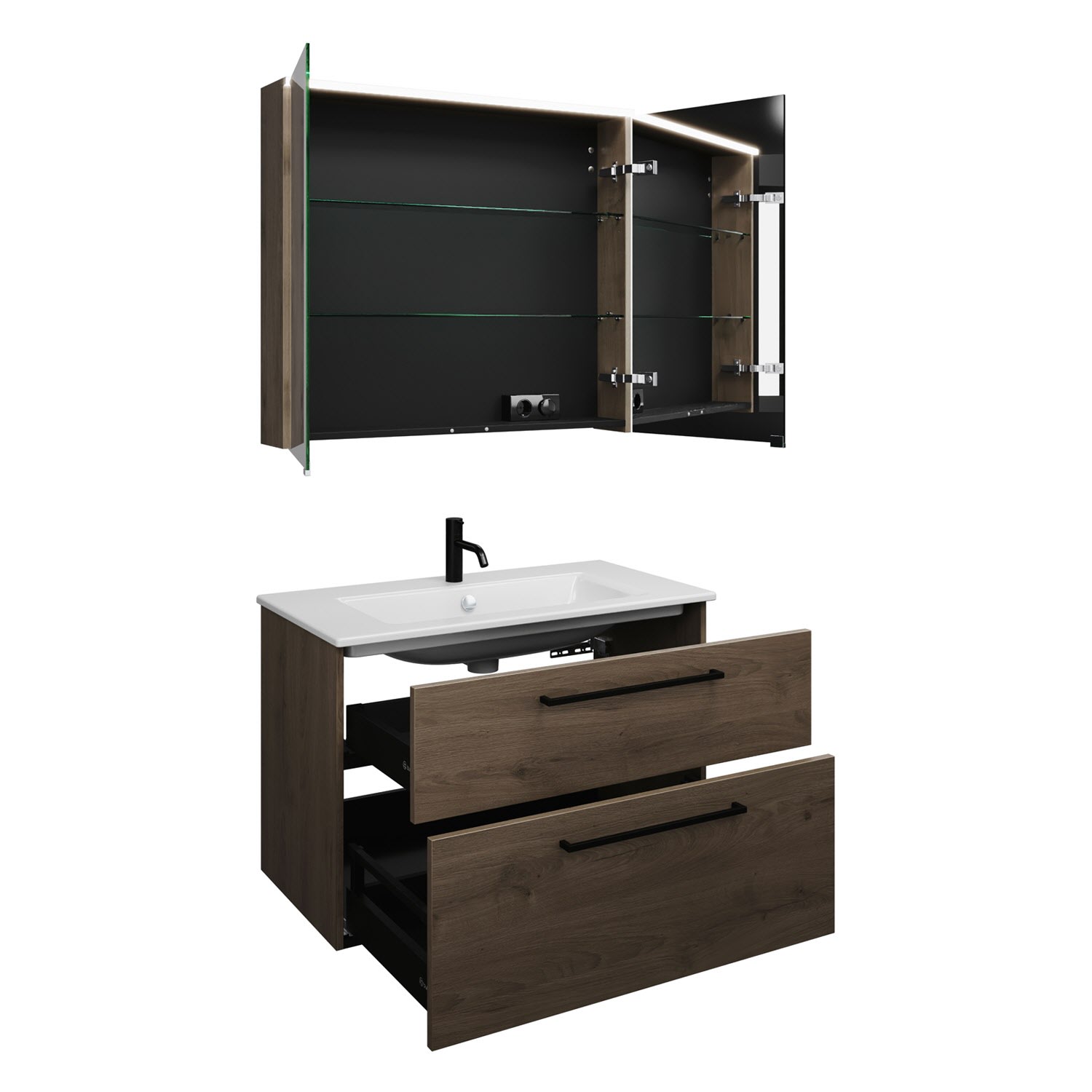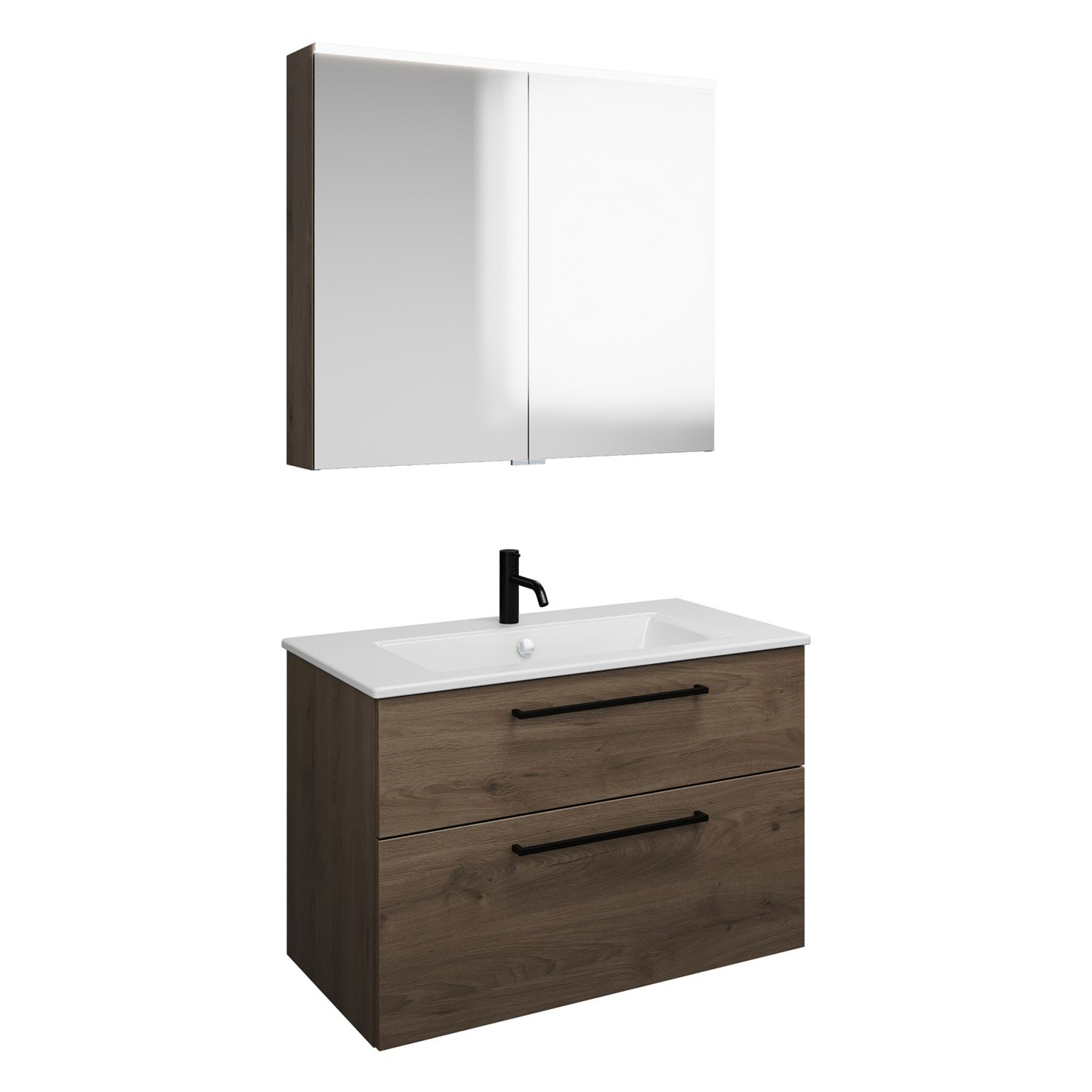 burgbad Eqio Badmöbel-Set 92 cm mit Keramik-Waschtisch Slim und Unterschrank mit Stangengriff G0234, mit Spiegelschrank
