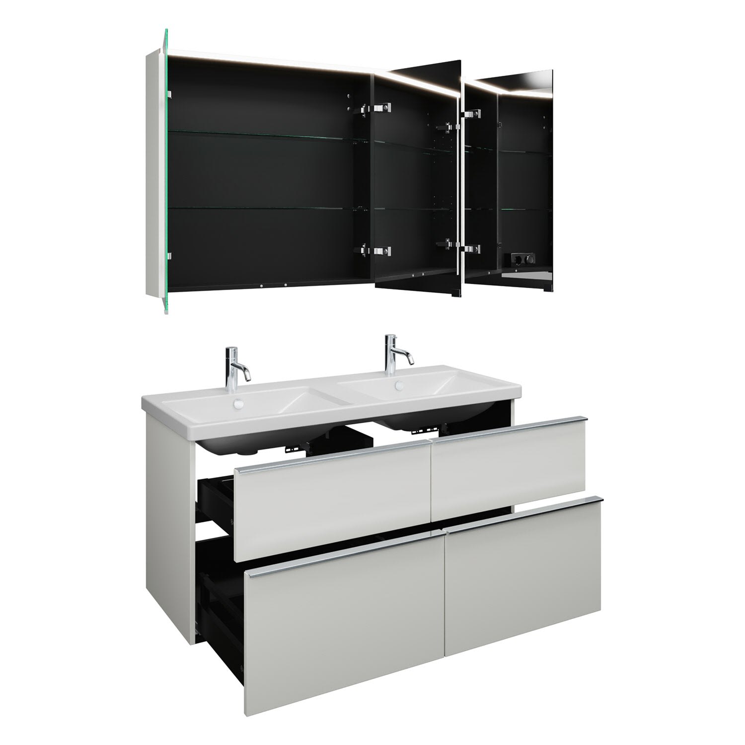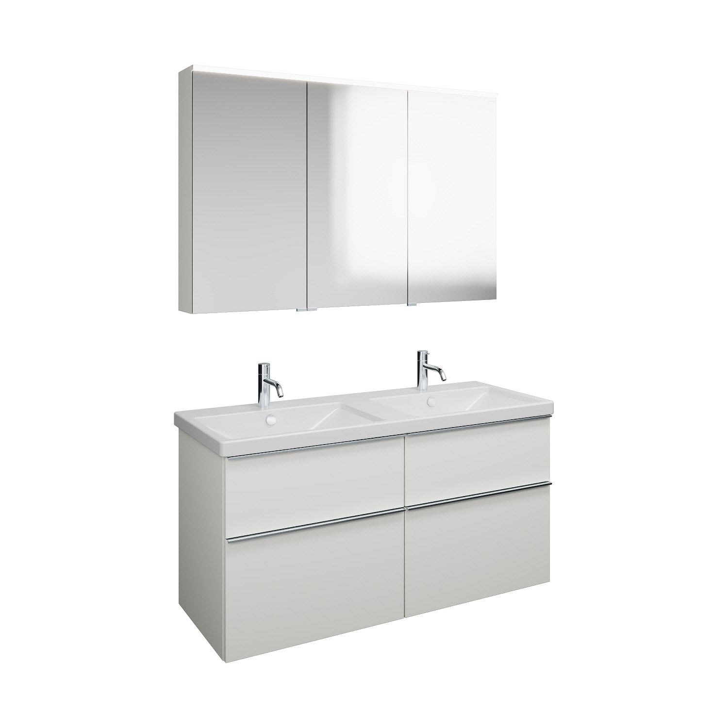 burgbad Eqio Möbelkombination inkl. Keramik-Doppelwaschtisch 123 cm, Doppeltür Spiegelschrank links, mit Griffleiste G0251