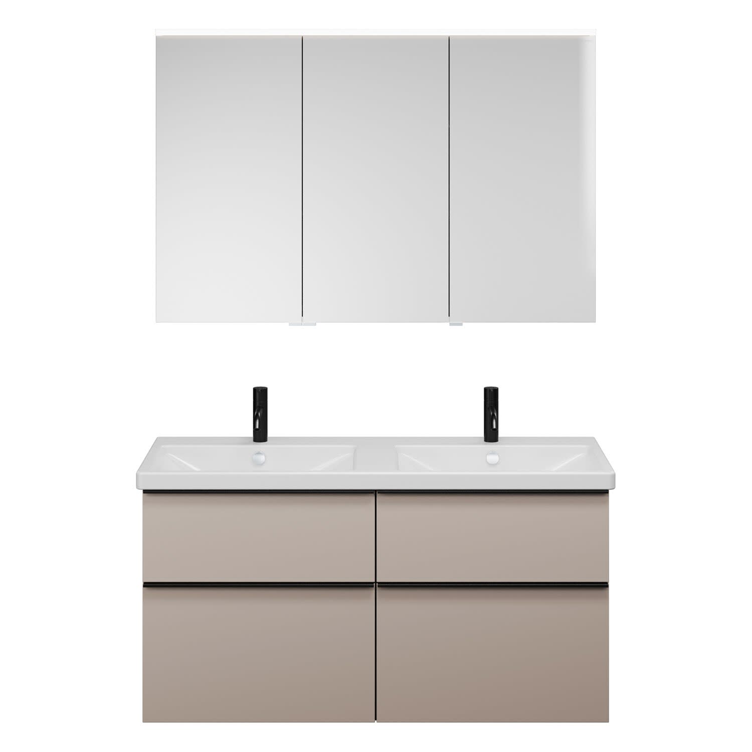 burgbad Eqio Möbelkombination inkl. Keramik-Doppelwaschtisch 123 cm, Doppeltür Spiegelschrank links, mit Griffleiste G0252
