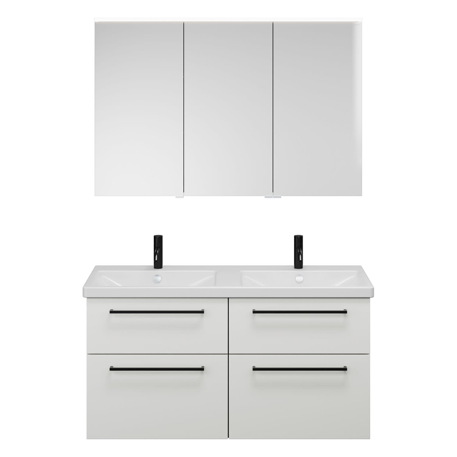 burgbad Eqio Möbelkombination inkl. Keramik-Doppelwaschtisch, Doppeltür Spiegelschrank 123 cm rechts, mit Stangengriff G0234