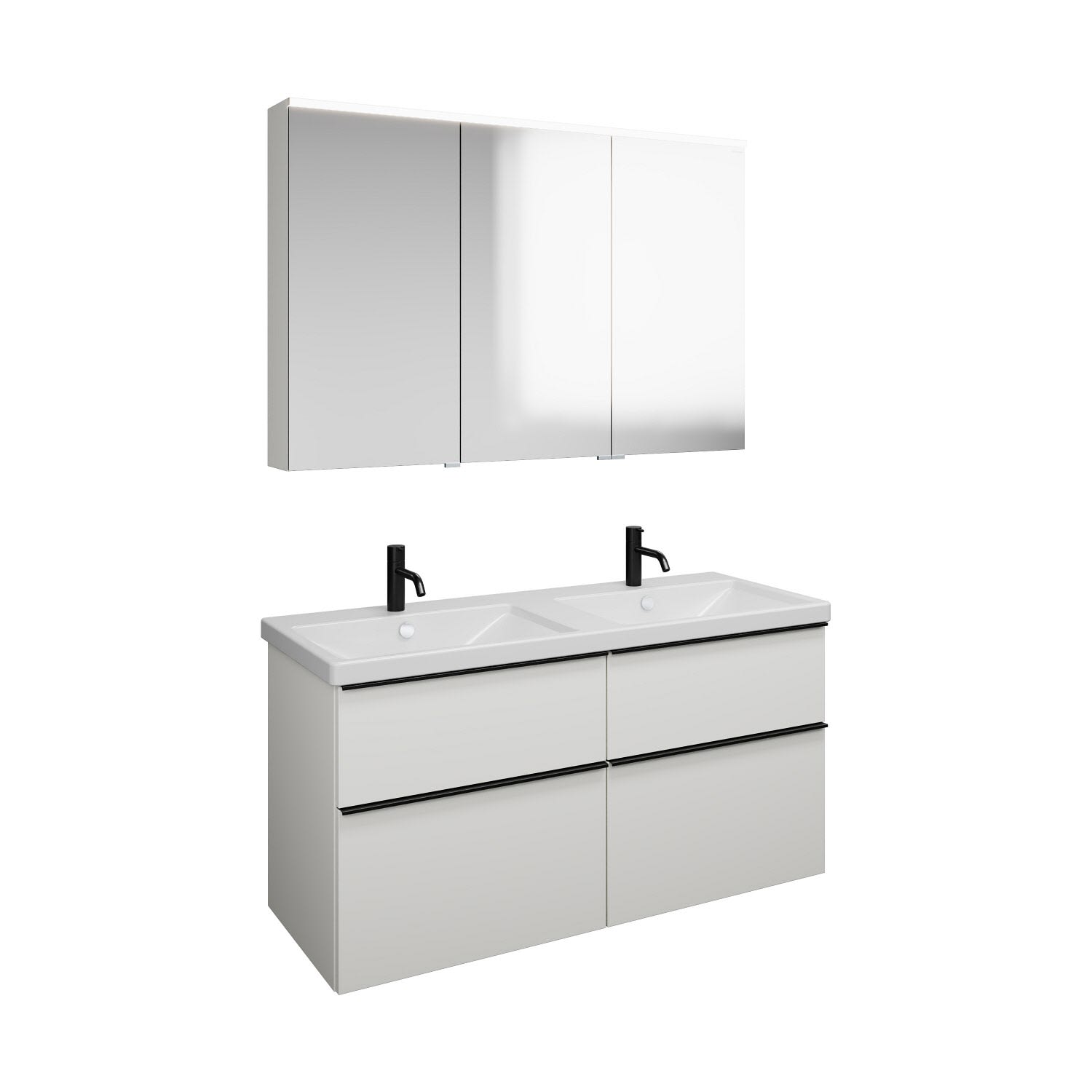 burgbad Eqio Möbelkombination inkl. Keramik-Doppelwaschtisch 123 cm, Doppeltür Spiegelschrank rechts, mit Griffleiste G0252