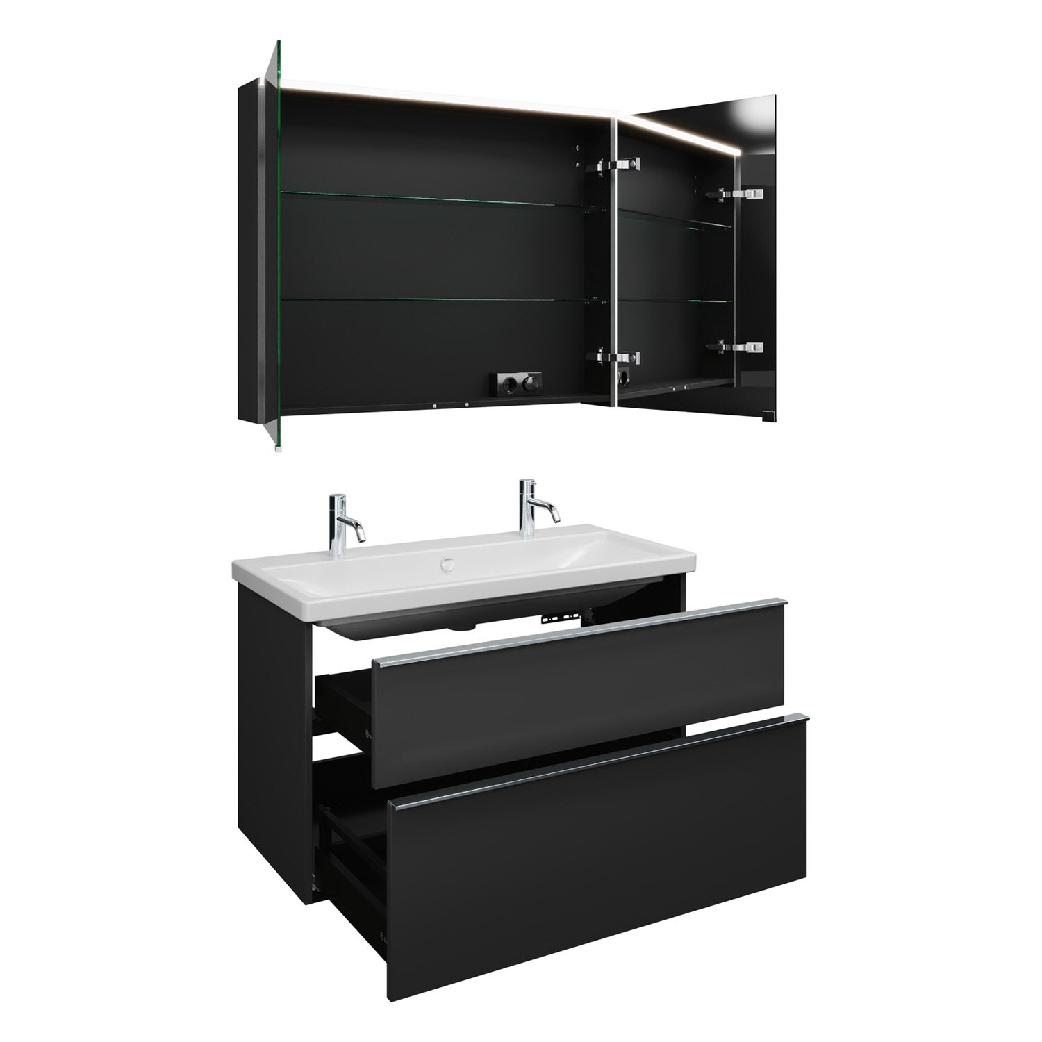 - 1 Schublade oben mit Siphonausschnitt und Inneneinteilung