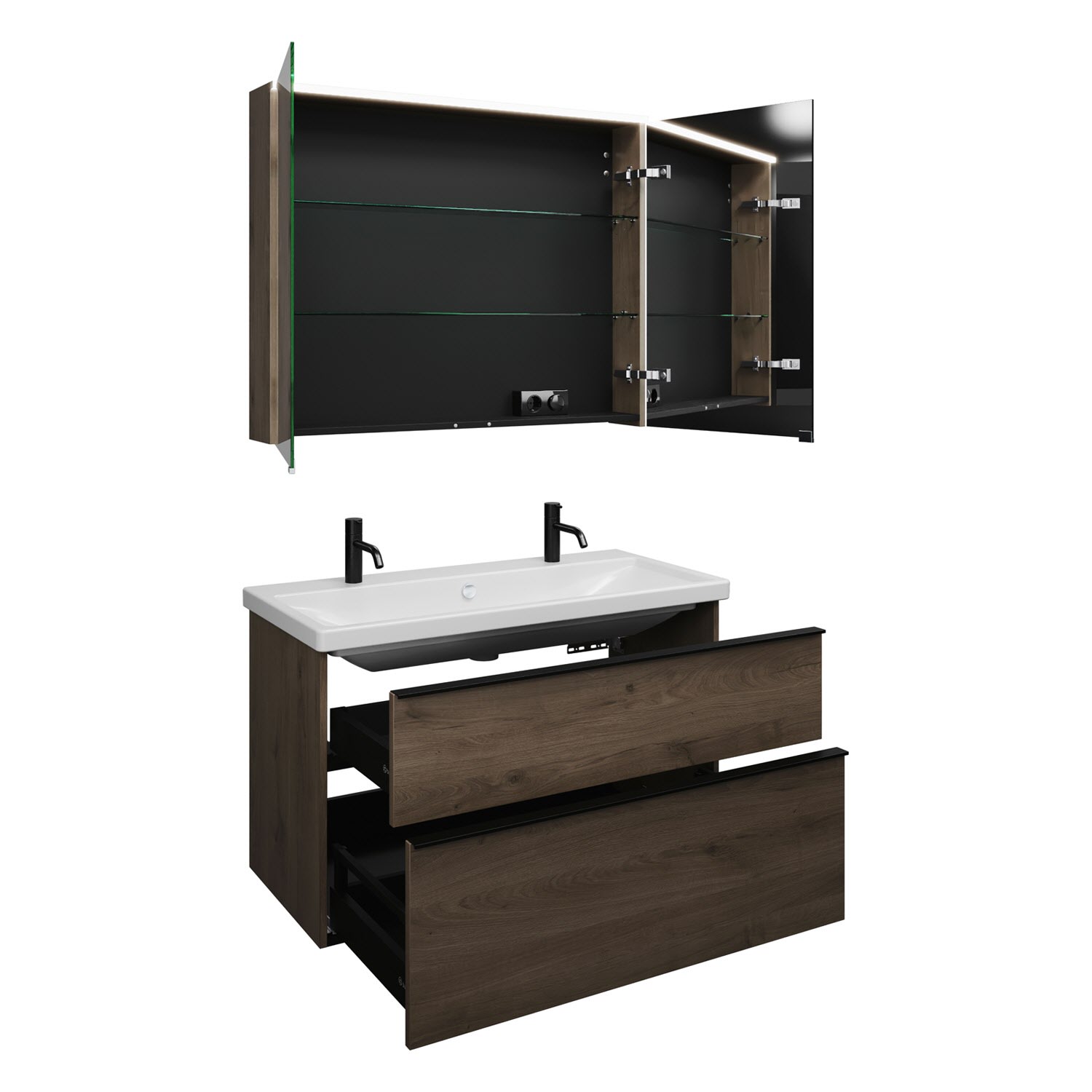 - 1 Schublade oben mit Siphonausschnitt und Inneneinteilung